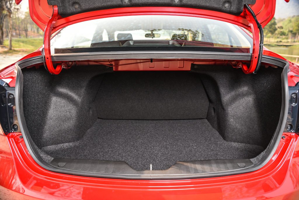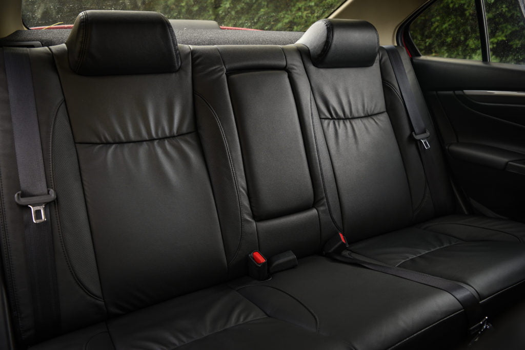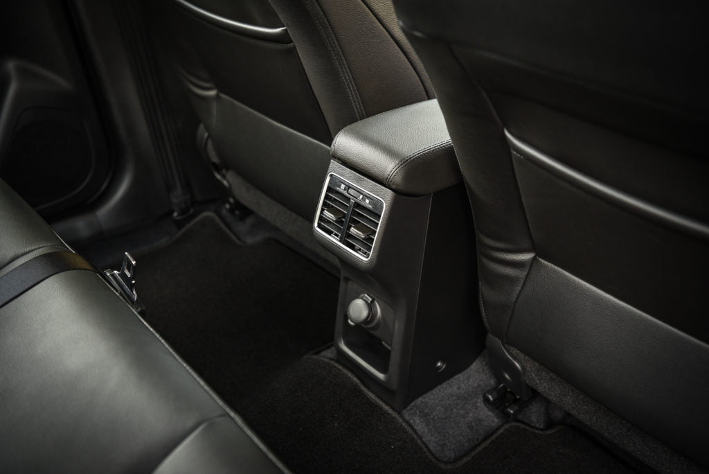 เหนือสิ่งอื่นใดคือความสบายเมื่อนั่งโดยสารที่เบาะหลัง พื้นที่เหนือศีรษะเหลือเพียบ พื้นที่ช่วงหัวเข้าก็ยังเหลือเป็นฝ่ามือ เบาะนั่งก็หนา นุ่ม นั่งสบาย พนักพิงเอนกำลังดี นั่ง 3 คนก็ไม่ทรมาน (แต่อย่างนานก็แล้วกัน) เบาะกลางจะดึงลงมาเป็นที่วางแขนได้ อุโมงค์กลางไม่สูงตระหง่าน แถมมีแอร์ด้านหลังด้วย แม้พนักพิงศีรษะของเบาะหลังจะปรับความสูงไม่ได้ แต่แค่ก็เพียงพอกับตำแหน่งรถอีโค่คาร์ที่กว้างและนั่งสบายที่สุดในคลาสแล้วล่ะ