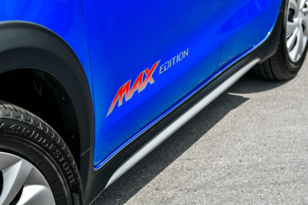 เสริมความเด่นขึ้นอีกขั้นด้วยสติกเตอร์ลวดลายกราฟิก MAX EDITION รอบคันรถตั้งแต่บนฝากระโปรงหน้า ข้างรถ และประตูท้าย สวยหรือไม่อยู่ที่จะมองละกัน ปิดท้ายความเท่ด้วยเสาอากาศครีบฉลามแทนที่เสาอากาศสั้นแบบเดิม