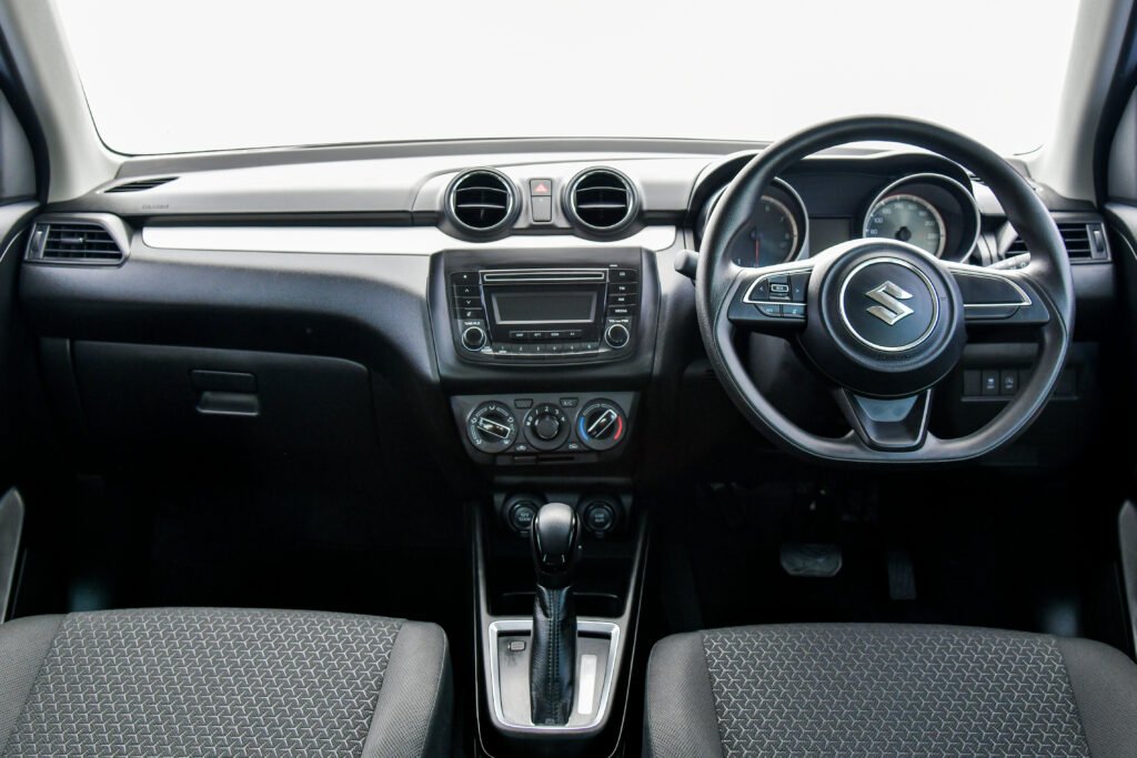 ห้องโดยสารของ Swift GL Max Edition ไม่แตกต่างจากรุ่น GL มาในโทนสีดำ เบาะผ้ากำมะหยี่ พื้นที่ห้องโดยสารโปร่งโล่งทั้งตอนหน้าและตอนหลังจากแนวหลังที่สูง ทัศนวิสัยรอบคันก็ดีตามไปด้วย ยกเว้นเสา A-pillar ที่ใหญ่หนาไปหน่อย การเข้า-ออกรถสะดวกสบายทั้ง 4 ประตู แม้ตัวรถจะยาวไม่ถึง 4 เมตร แต่ก็ออกแบบให้มีพื้นที่ภายในที่กว้างขวางนั่ง 4 คนได้แบบสบายๆ
