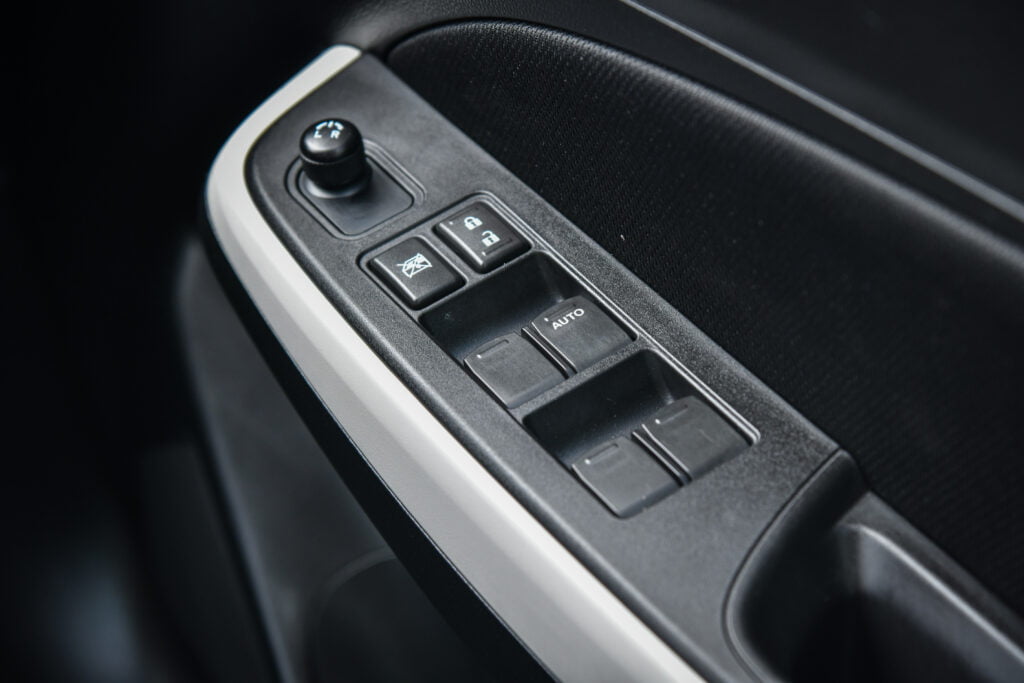 เบาะนั่งปรับมือ พวงมาลัยปรับได้แค่สูง-ต่ำ มีกระจกมองข้างปรับไฟฟ้า กระจกหน้าต่างปรับไฟฟ้า เซ็นทรัลล็อก พวงมาลัยทรงสปอร์ต 3 ก้านแบบฐานตัดพร้อมปุ่มควบคุมเครื่องเสียง หน้าปัดเรือนไมล์เป็นแบบเข็มอนาล็อกพร้อมจอดิจิทัลแสดงข้อมูลการขับขี่