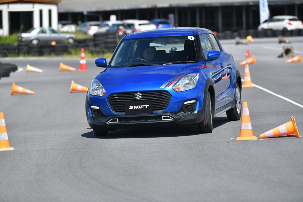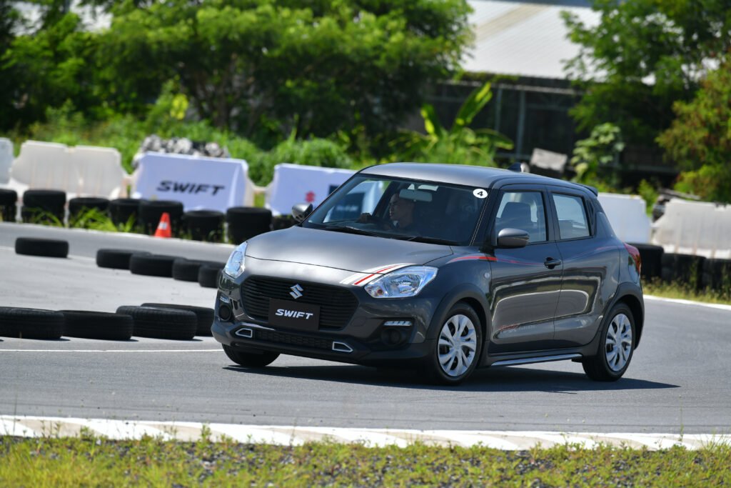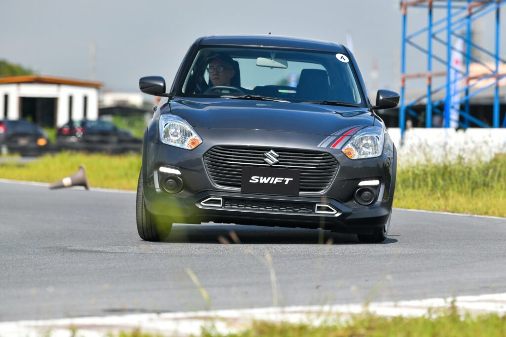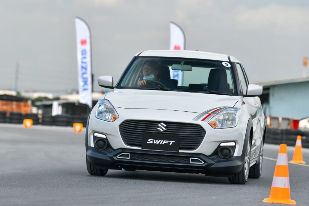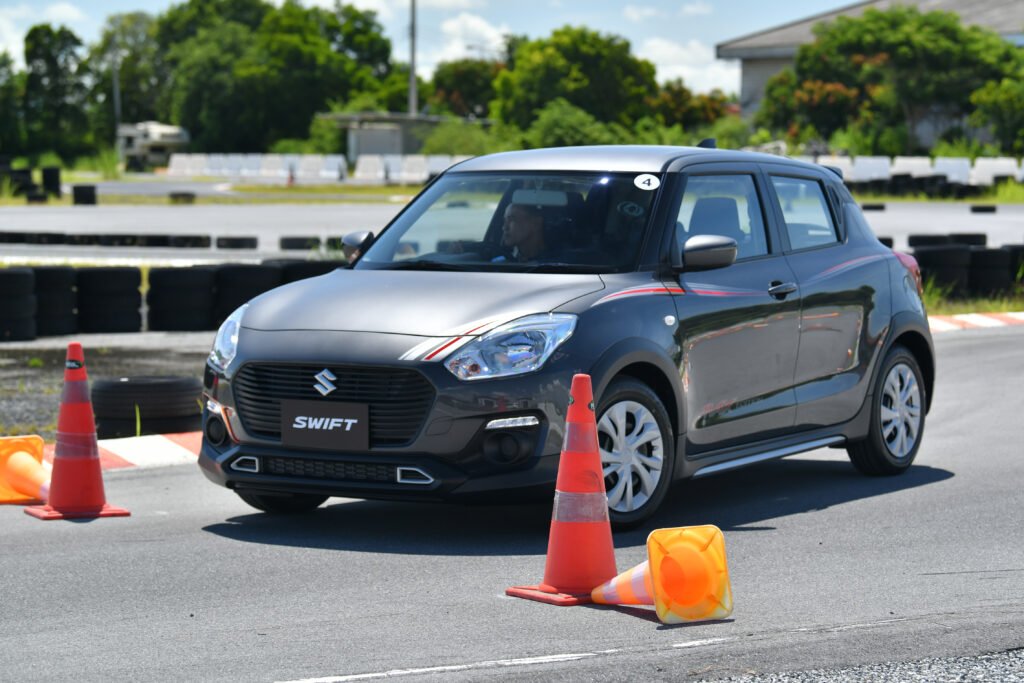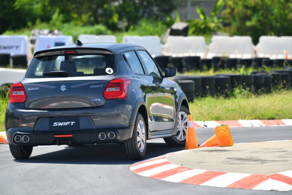 การทดสอบขับขี่ครั้งนี้เป็นการขับบนสนามในรูปแบบ Gymkhana 2 รอบ พร้อมจับเวลา จากเดิม Swift เป็นรถที่ขับมันส์อยู่แล้ว พอเจอสนามรูปแบบนี้เรียกว่าเข้าทาง เพราะได้ทดสอบทั้งอัตราเร่งทางตรง การเข้าโค้งซ้าย-ขวา การตอบสนองของช่วงล่าง พวงมาลัย และเบรก แบบเน้นๆ