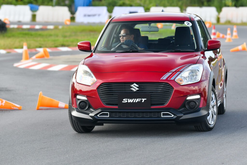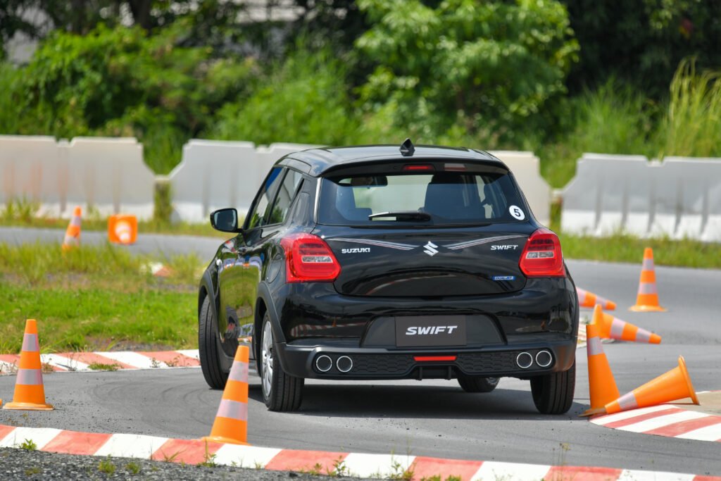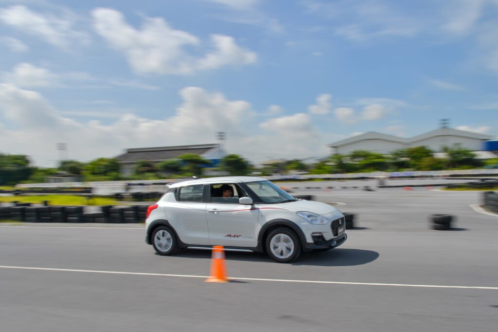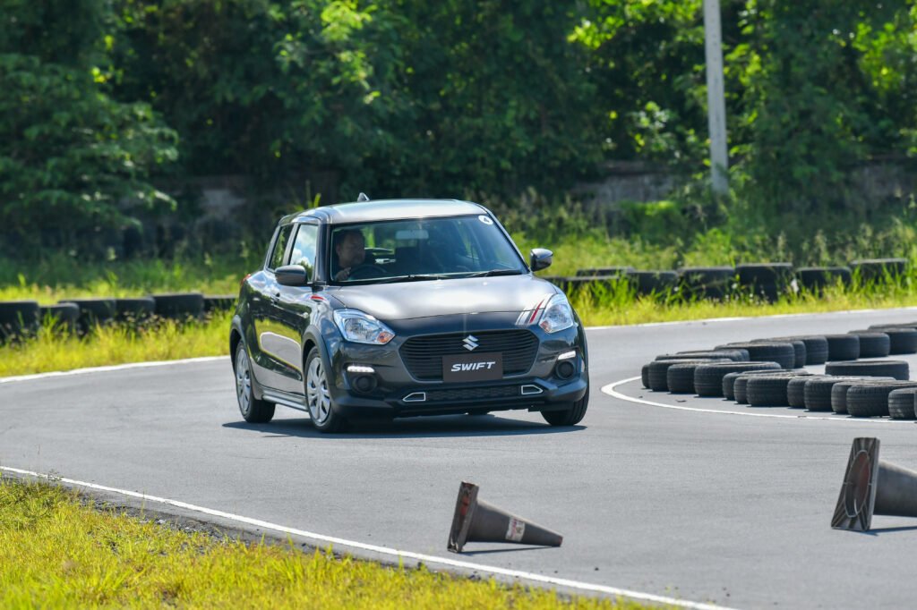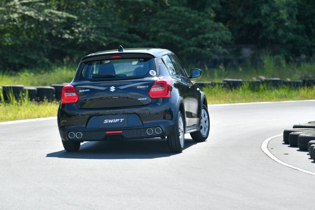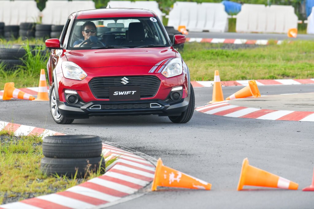 การทดสอบขับขี่ครั้งนี้เป็นการขับบนสนามในรูปแบบ Gymkhana 2 รอบ พร้อมจับเวลา จากเดิม Swift เป็นรถที่ขับมันส์อยู่แล้ว พอเจอสนามรูปแบบนี้เรียกว่าเข้าทาง เพราะได้ทดสอบทั้งอัตราเร่งทางตรง การเข้าโค้งซ้าย-ขวา การตอบสนองของช่วงล่าง พวงมาลัย และเบรก แบบเน้นๆ