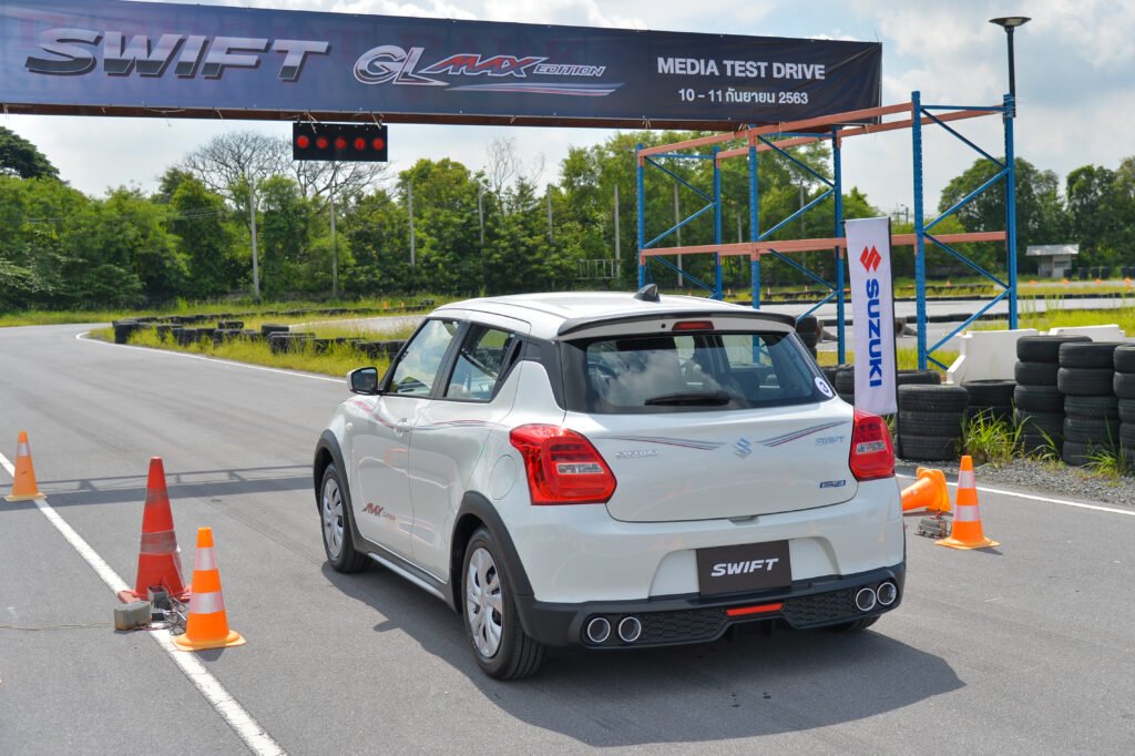 ขับทดสอบรอบแรกเป็นการดูไลน์สนาม เราทำเวลาได้ไม่ดีเท่าไร แต่พอรอบสองเมื่อรู้จักสนามดีแล้วเจ้า Swift GL Max Edition ช่วยให้เราทำเวลาดีกว่ารอบแรกมากพอสมควร สำหรับคนที่ขับเก่ง มีทักษะขั้นสูงก็จะยิ่งสนุกไปกับ Swift GL Max Edition ได้เต็มที่กว่านี้