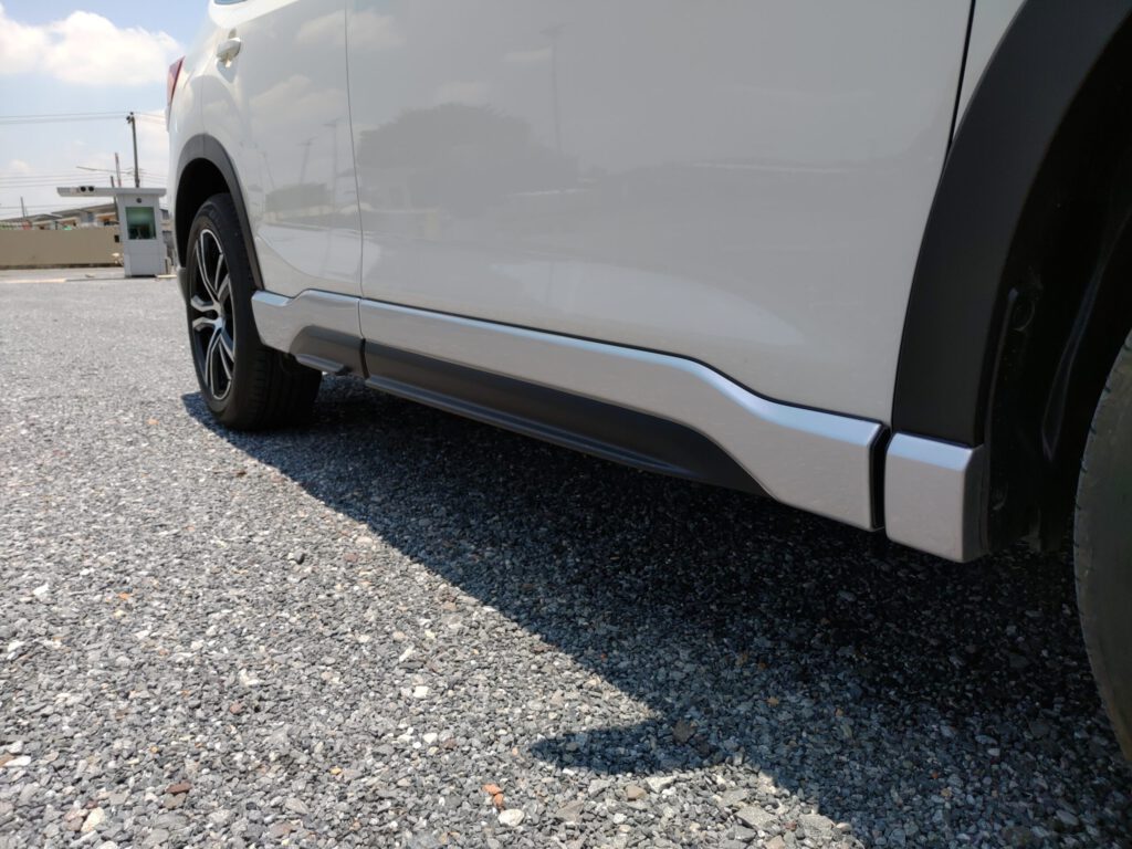 หันมาข้างรถจะพบกับสเกิร์ตข้างดีไซน์สปอร์ตที่ได้รับการออกแบบมาเป็นอย่างดี สวยงามลงตัวกับล้ออัลลอยขนาด 18 นิ้ว ลาย 5 ก้านคู่ สีทูโทนปัดเงา ส่งผลให้ดีไซน์โดยรวมของรถดูสปอร์ตทันสมัยขึ้น นอกจากนี้ยังคงติดตั้งราวหลังคาสำหรับติดตั้งอุปกรณ์พิเศษต่างๆ เพื่อการเดินทางท่องเที่ยววันหยุด จุดที่โดดเด่นมากๆ คือสปอยเลอร์หลังคาทรงสปอร์ตสีดำเงาที่ส่งผลกับดีไซน์โดยรวมของรถให้ดูสปอร์ตทันสมัยขึ้นอย่างเห็นได้ชัด ทั้งยังช่วยเสริมเรื่องอากาศพลศาสตร์ไปในตัวด้วย