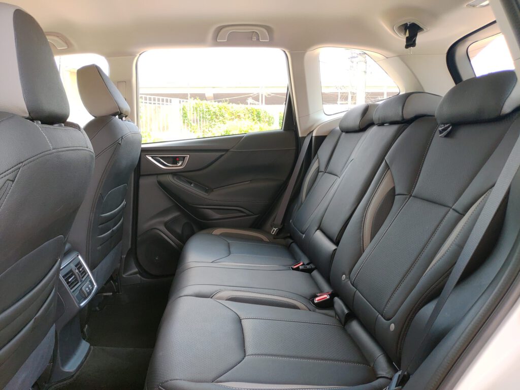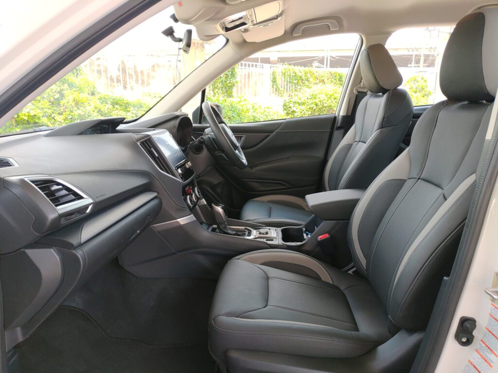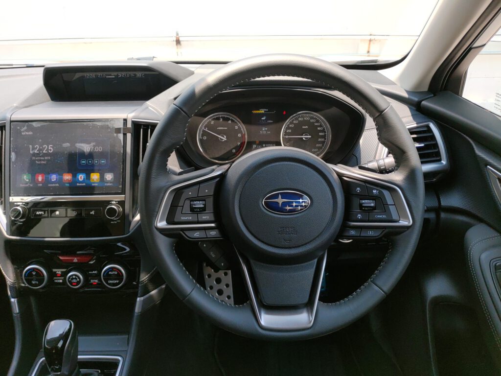 รูปทรงรถแบบเหลี่ยมกล่องส่งผลให้ภายในมีพื้นที่กว้างและโปร่ง นั่งขับแล้วรู้สึกไม่อึดอัด ทัศนวิสัยรอบคันดี เข้า-ออกรถสะดวก สามารถปรับตำแหน่งนั่งที่สบายที่สุดได้ง่ายจากเบาะปรับไฟฟ้าและพวงมาลัยที่ปรับได้ 4 ทิศทาง ขึ้น-ลง-เข้า-ออก ผู้โดยสารที่เบาะหลังจะพบกับความสบายจากพื้นที่ที่กว้างขวางและเบาะที่นุ่มสบาย โดยรวมแล้ว Forester Eyesight เป็นเอสยูวีของคนมีครอบครัวที่รักความกว้าง ความสบาย ขับนุ่ม และชอบเทคโนโลยีปลอดภัยแบบครบๆ