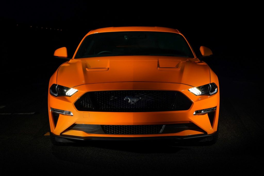 Mustang ทั้ง 2 รุ่นจะเป็นสปอร์ตหลังลาด (Fastback) มาพร้อมดีไซน์ที่แข็งแกร่งดุดันด้วยกระจังหน้าแบบ Shark Nose ขนาดใหญ่สำหรับสูดอากาศเข้าสู่ห้องเครื่องยนต์ ฝากระโปรงหน้าได้รับการปรับให้แบนราบลงพร้อมช่องระบายอากาศ ตัวรถถูกออกแบบเน้นหลักอากาศพลศาสตร์มากยิ่งขึ้นด้วยการปรับลดความสูงของช่วงหน้าลงและเพิ่มขนาดของสปลิตเตอร์หน้าเพื่อเพิ่มแรงกด