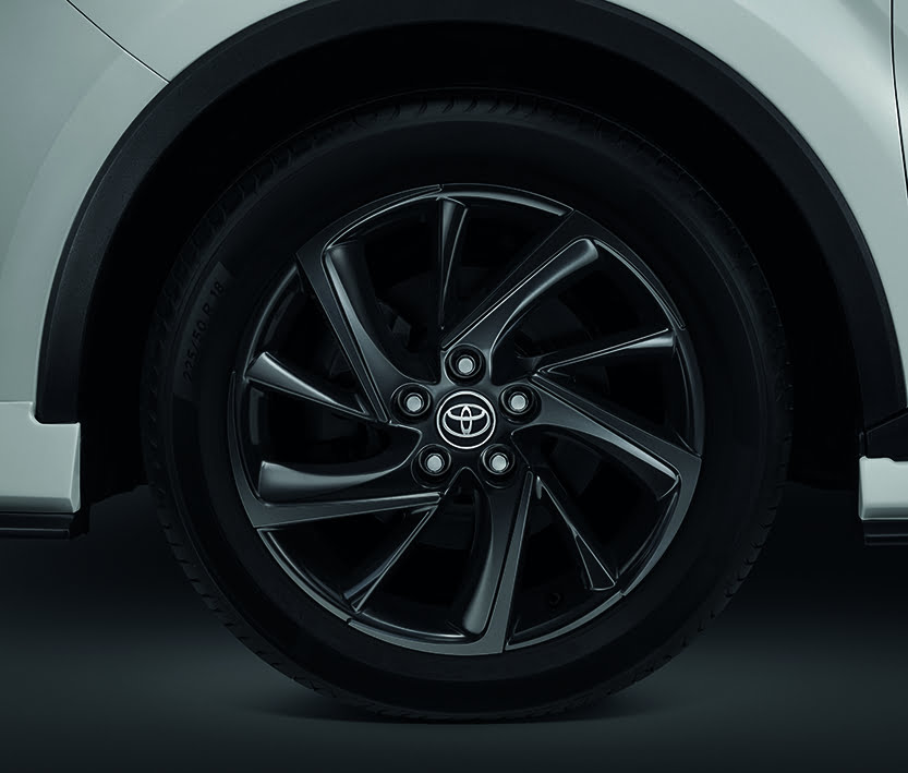 ดีไซน์ภายนอกแบบสปอร์ตกับแพ็กเกจชุด GR Sport ประกอบด้วย สเกิร์ตรอบคัน, ชุดตกแต่งกันชนหน้า, ล้ออัลลอย 18 นิ้ว ดีไซน์ใหม่, ไฟตัดหมอกแบบ LED, พร้อมสัญลักษณ์ GR ที่กันชนหน้า และ GR Sport บริเวณท้ายรถ