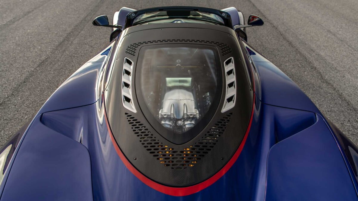 ด้านหน้า F5 Roadster มีลักษณะเหมือนกับคูเป้ ที่โดดเด่นที่สุดคือเส้นหลังคาใหม่ของไฮเปอร์คาร์ ที่ตรงกันข้ามกับ F5 Coupe ซึ่งหลังคาของ F5 Roadster ได้รับการออกแบบใหม่ด้วยแผงหลังคาที่สามารถถอดออกได้ซึ่งสร้างขึ้นจากคอมโพสิตคาร์บอนไฟเบอร์ที่แข็ง อีกทั้งมีหลังคาคาร์บอนไฟเบอร์แบบขึ้นรูปชิ้นเดียวและบุด้วยเบาะอัลคันทาราที่อ่อนนุ่ม แผงกันฝนและอากาศได้รับการยึดด้วยสลักเกลียวแบบปลดเร็วสี่ตัวและสลักที่มีความแข็งแรงสูงหนึ่งคู่ เพื่อรองรับความสามารถในการเร่งความเร็วอันน่าทึ่งของไฮเปอร์คาร์และแรงแอโรไดนามิกที่ความเร็วสูงสุด แผงหลังคาน้ำหนักเบามีน้ำหนักเพียง 8 กก. ทำให้การถอดและติดตั้งทำได้ง่ายสำหรับคนเดียว