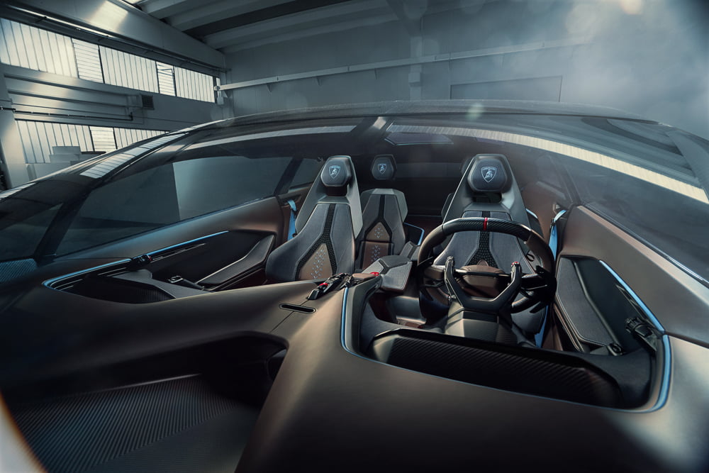 สำหรับคอนเซ็ปต์คาร์รุ่นนี้ นักออกแบบได้ถ่ายทอดปรัชญาในด้านวัสดุที่ยั่งยืนไปสู่การตกแต่งห้องโดยสารภายใน โดยเป็นการบุกเบิกสิ่งใหม่โดยยังคงไว้ซึ่งรูปลักษณ์ สัมผัส คุณภาพและความทนทาน คอนเซ็ปต์คาร์นี้จึงแสดงถึงศักยภาพทางเทคนิคของแบรนด์ในปัจจุบัน และยกระดับลัมโบร์กินีไปสู่อีกขั้นของความยั่งยืน