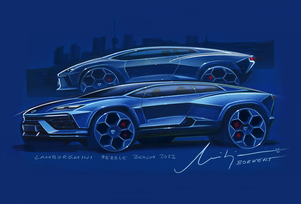 การออกแบบคอนเซ็ปต์คาร์ GT นี้ได้แรงบันดาลใจมาจากอากาศยาน โดย มร.มิตจา โบร์เคิร์ต ผู้อำนวยการฝ่ายการออกแบบของ Centro Stile ซึ่งทำงานให้กับลัมโบร์กินี อธิบายถึงจุดเริ่มต้นของกระบวนการออกแบบว่ามาจากรถซูเปอร์สปอร์ต หากต่อยอดไปสู่การวางตำแหน่งของนักขับอย่างเหมาะสม โดยได้แรงบันดาลใจมาจากรุ่น Huracan Sterrato[1]
