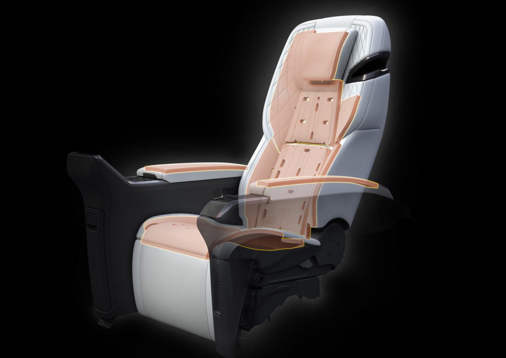 ห้องโดยสารของ All-New Lexus LM ยกระดับความสะดวกสบายที่เหนือกว่าและความบันเทิงระดับพรีเมียม Lexus LM เป็นรถยนต์รุ่นแรกของโลกที่นำนวัตกรรมเบาะนั่งโฟมยูรีเทน AdaptiPedic โดย Woodbridge มาใช้ซึ่งจะช่วยดูดซับแรงสั่นสะเทือนจากพื้นผิวถนนอีกชั้นหนึ่งโดยติดตั้งอยู่ในเบาะแถวสอง นอกจากนี้ยังมาพร้อมระบบนวดที่สามารถเลือกโปรแกรมนวดได้ถึง 7 รูปแบบ มีเบาะรองน่องปรับไฟฟ้า และมีระบบระบายอากาศและทำความร้อน