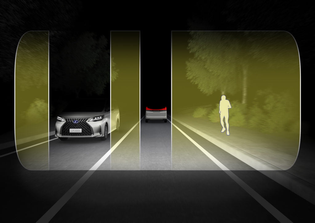 ระบบความปลอดภัย Lexus Safety System Plus ถูกติดตั้งมาเป็นอุปกรณ์มาตรฐานใน Lexus LM ประกอบด้วย ระบบติดตามช่องทางวิ่ง (Lane Tracing Assist) ช่วยรักษารถให้อยู่ในเลนและจะส่งสัญญาณเตือนผู้ขับและช่วยหน่วงพวงมาลัยเมื่อตรวจพบว่ารถเบี่ยงออกนอกเลน, ระบบควบคุมความเร็วแบบแปรผัน (Dynamic Radar Cruise Control) ช่วยรักษาความเร็วและรักษาระยะห่างจากรถยนต์ที่วิ่งอยู่ด้านหน้า ระบบป้องกันก่อนการชน (Pre-Collision System) ใช้เรดาห์ความละเอียดคลื่นระดับมิลลิเมตร พร้อมกล้องเซนเซอร์โมโนคูลาร์คอยตรวจหารถยนต์ที่อยู่ข้างหน้าหรือคนข้ามถนน และระบบปรับไฟสูง-ต่ำ อัจฉริยะ (Adaptive High-Beam System) เลือกปรับไฟสูงเป็นต่ำโดยอัตโนมัติเฉพาะส่วนเพื่อไม่ให้แสงไฟรบกวนเพื่อนร่วมทาง