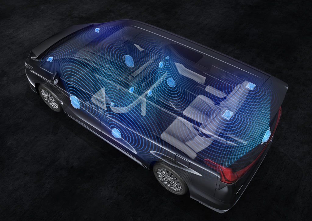 Lexus LM ยังมาพร้อมกับสุดยอดเครื่องเสียงจาก Mark Levinson มาพร้อมกับเทคโนโลยี QLS (Quantum Logic Surround) ทำให้ได้ห้องโดยสารที่ให้มิติเสียงรอบทิศทางราวกับโรงภาพยนต์ชั้นนำเคลื่อนที่โดยรุ่น 4 ที่นั่งมาพร้อมลำโพง 19 ตัว และรุ่น 7 ที่นั่งจะมีลำโพง 17 ตัว แสดงผลบนหน้าจอขนาดใหญ่บน Partition ระบบเครื่องเสียงนี้ยังรองรับ Apple CarPlay สามารถควบคุม IPhone ผ่านหน้าจอของ Lexus LM เพียงเชื่อมต่อเข้ากับระบบ ก็จะสามารถสั่งการ ระบบนำทาง โทรออกหรือรับสายทั้งส่งและรับข้อความผ่าน Siri ได้อย่างง่ายดาย