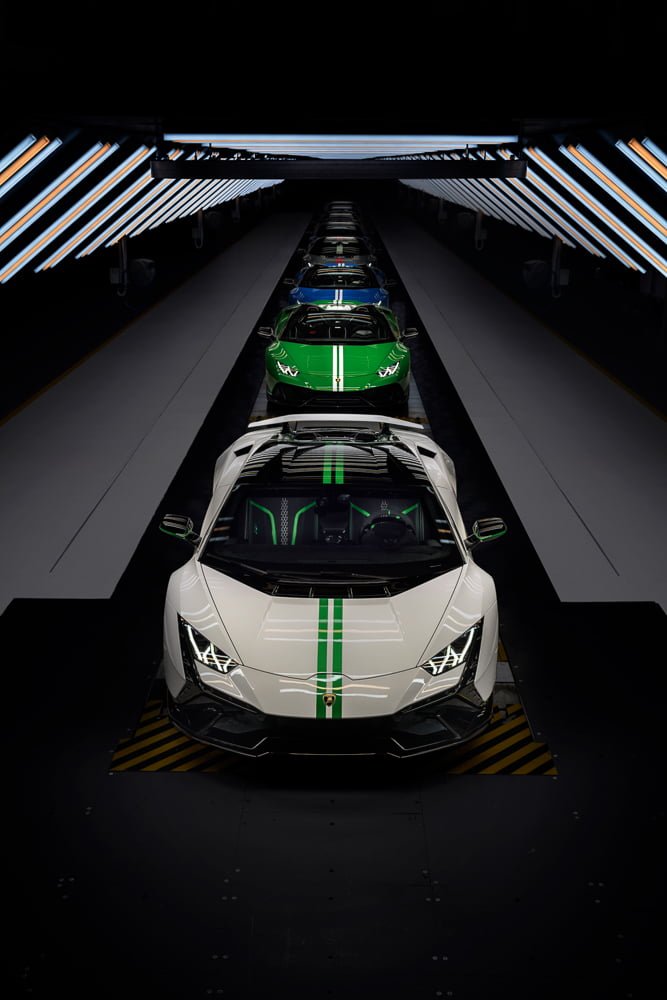 ส่วน EVO Spyder เป็นรถยนต์ที่ตอบโจทย์การขับขี่แนวไลฟ์สไตล์มากที่สุดของตระกูล Huracán โดยผสานสุดยอดสมรรถนะที่ดีที่สุดในคลาสเข้ากับสถาปัตยกรรมยานยนต์เปิดประทุนอันเปี่ยมเสน่ห์ โดยเวอร์ชันฉลองครบรอบ 60 ปี มีให้เลือกทั้งการตกแต่งสีพื้นในเฉดน้ำเงิน Blu Le Mans ตัดกับรายละเอียดสีขาว Bianco Isi ส่วนภายในยังคงใช้ธีมหนังสีดำ Nero Ade Alcantara และตกแต่งด้วยสีน้ำเงิน Blu Amon และแถบสีขาว Bianco Leda ส่วนอีกเวอร์ชันนำเสนอสีพื้นในโทนเขียว Verde Viper ผสานรายละเอียดสีขาว Bianco Isi ส่วนห้องโดยสารภายในยังคงใช้หนังสีดำ Nero Ade Alcantara และเสริมจุดโฟกัสสายตาด้วยโทนสีแดง Rosso Alala และขาว Bianco Leda อย่างลงตัว ทั้งสองเวอร์ชันก็ได้รับการตกแต่งด้วยขอบ Damiso ขนาด 20 นิ้วเฉดสีดำวาวเช่นเดียวกัน