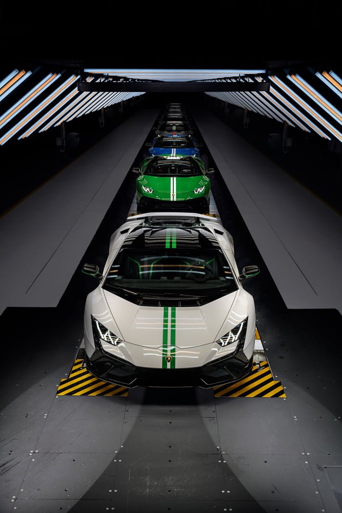 Huracán STO (Super Trofeo Omologata) คือตัวแทนแห่งสมรรถนะขั้นสุดของรถยนต์ตระกูลนี้ซึ่งติดตั้งเครื่องยนต์แบบไร้ระบบอัดอากาศ V10 กำลังเครื่อง 640 แรงม้า สำหรับรุ่นฉลอง 60 ปีนำเสนอโทนสี 2 เวอร์ชัน ซึ่งได้แรงบันดาลใจมาจากชุดนักแข่งรถซูเปอร์สปอร์ตและในสี Tone-on-Tone และถือเป็นความพิเศษแบบที่ไม่เคยเกิดขึ้นมาก่อน จึงควรค่าแก่การครอบครอง โดยเวอร์ชันแรก โดดเด่นด้วยการใช้โทนน้ำเงิน Blu Aegeus เป็นสีพื้นของตัวรถ ตกแต่งรายละเอียดด้วยเฉด Blu Astraeus ซึ่งสอดรับกับชิ้นส่วนคาร์บอนไฟเบอร์ทำสี Blu Mira อย่างลงตัว การตกแต่งห้องโดยสารภายในผสานการใช้วัสดุหนัง Alcantara โทนสีดำ Nero Cosmus และสีเทา Grigio Octans ได้อย่างงดงาม ส่วนองค์ประกอบปลีกย่อยเลือกใช้โทนสีเทา Nero Ade และตกแต่งเบาะนั่งด้วยเฉดสีน้ำเงิน Blu Amon ให้แลดูตัดกันอย่างโดดเด่น สำหรับเวอร์ชันที่สอง สีพื้นของตัวรถเป็นโทนเทา Grigio Telesto สลับสีดำ Nero Noctis ผสานกับการโชว์สีจริงของวัสดุคาร์บอนไฟเบอร์ ส่วนห้องโดยสารภายในใช้หนัง Alcantara สีดำ Nero Cosmus ผสมกับเทา Grigio Octans และเพิ่มการตกแต่งด้วยหนังโทนสีแดง Rosso Alala ให้สวยสะดุดตาอย่างลงตัว โดยทั้งสองเวอร์ชันมีการตกแต่งเบาะด้วยโลโก้ฉลองครบรอบ 60 ปี พร้อมล้อ Forged อลูมิเนียมลาย Hek ขนาด 20 นิ้ว สีดำด้าน