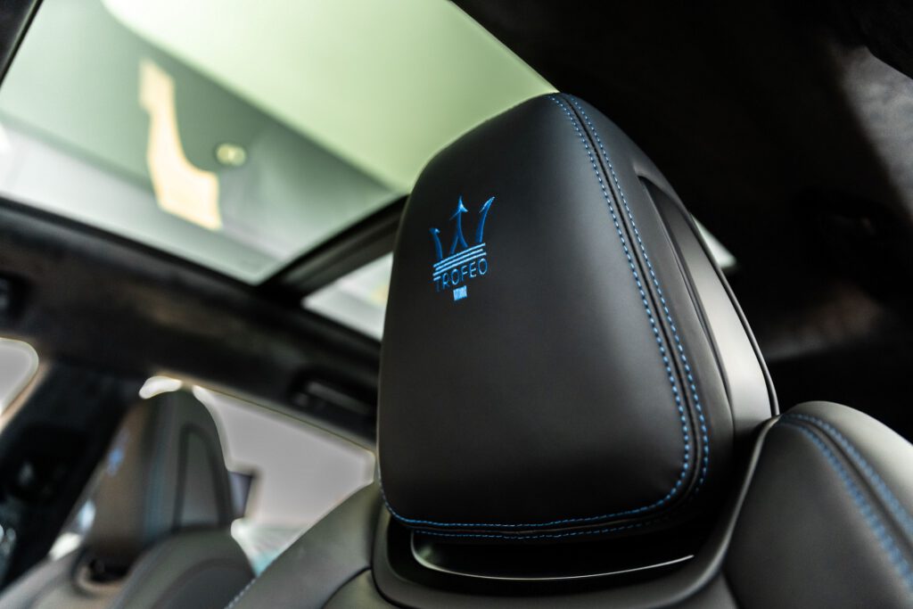 ห้องโดยสารของ Levante Trofeo Launch Edition ยกระดับความหรูและสปอร์ตขึ้นไปอีกขั้นจากการตกแต่งด้วยวัสดุคาร์บอนไฟเบอร์ผิวด้าน ติดตั้งป้ายโลหะ ‘1 of 100’ บริเวณคอนโซลกลาง เพิ่มกราฟิก Trofeo บนจอแสดงผลอเนกประสงค์ เบาะทรงสปอร์ตหุ้มหนังแท้ Pieno Fiore มีให้เลือกทั้งสีดำ, แดง หรือน้ำตาลอ่อน เย็บตะเข็บด้วยเส้นด้ายสีตัดกัน พร้อมปักโลโก้ Trofeo บริเวณหมอนรองศีรษะ ซึ่งหนังแท้ Pieno Fiore มีคุณสมบัติโดดเด่น ต่างจากหนังทั่วไปที่ใช้ในรถยนต์ คือ ผิวที่นุ่มนวล และลวดลายธรรมชาติที่เกิดจากการสั่งสมนานนับปี พร้อมเพิ่มความสุนทรีย์ด้วยชุดเครื่องเสียงพรีเมียมเซอร์ราวด์ Bowers & Wilkins 1,280 วัตต์ ลำโพง 17 ตำแหน่ง