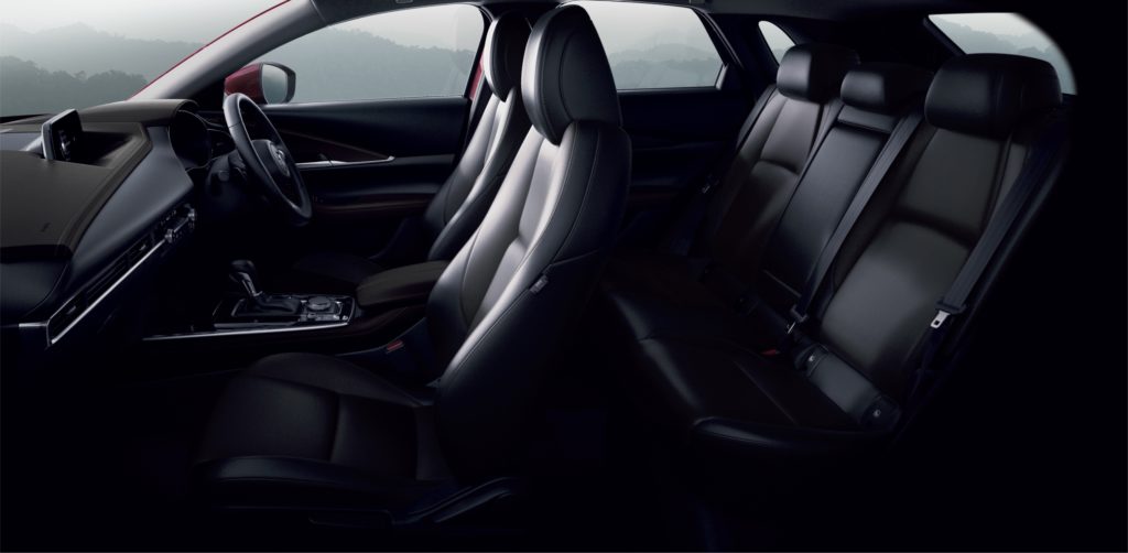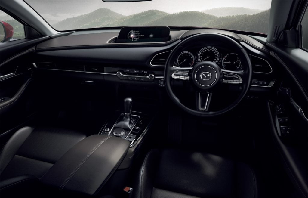 การออกแบบห้องโดยสารของ CX-30 ยึดหลักปรัชญาการออกแบบที่เน้นมนุษย์เป็นศูนย์กลาง แดชบอร์ดหน้าแผ่กว้างทอดยาวจากหน้าปัดไปจรดแผงประตู จัดวางตำแหน่งคันเกียร์ ที่วางแก้ว และปุ่มควบคุมหน้าจอสัมผัสให้กับผู้ขับขี่เพื่อการใช้งานที่สะดวก สีภายในตกแต่งด้วยโทนสีน้ำตาลเข้มที่ดูทันสมัยและภูมิฐาน วัสดุที่ใช้และคุณภาพการประกอบอยู่ในระดับท็อปคลาสของค่ายรถญี่ปุ่น