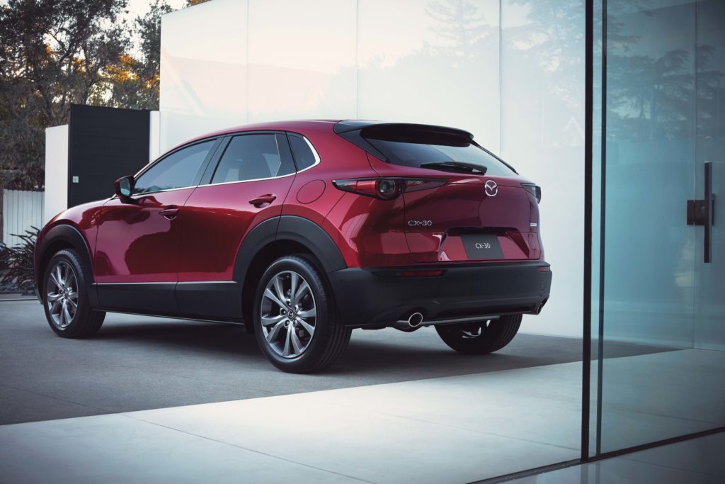CX-30 พัฒนาต่อยอดมาจากรถเก๋ง Mazda 3 ดังนั้นจึงไม่แปลกที่รายละเอียดหลายๆ ส่วนจะดูคล้ายๆ กัน มิติตัวถังยาว4,395 มม. กว้าง 1,795 มม. สูง 1,540 มม. ระยะฐานล้อ 2,655 มม. ระยะต่ำสุดจากพื้น 175 มม. ห้องเก็บสัมภาระด้านท้ายจุ 430 ลิตร มาพร้อมระบบประตูท้ายไฟฟ้า