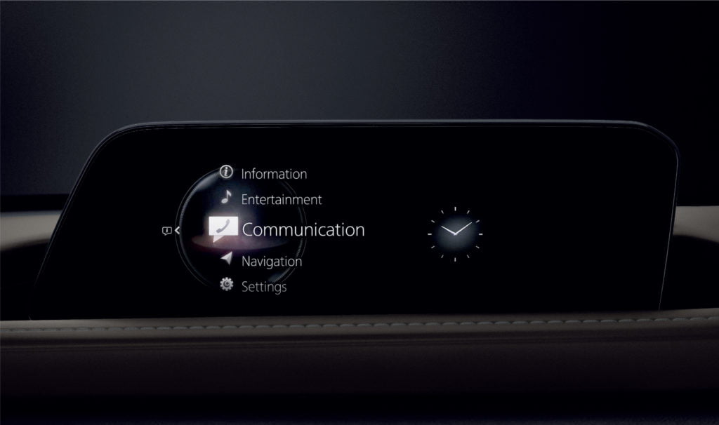 CX-30 ใช้จอแสดงผล Center Display แบบ Widescreen ขนาด 8.8 นิ้ว ควบคุมการทำงานผ่านปุ่มหมุน Center Commander ที่คอนโซลกลาง หน้าจอดังกล่าวแสดงผลระบบสาระบันเทิง Mazda Connect รองรับการเชื่อมต่อบลูทูธ, Apple CarPlay, Android Auto มีระบบนำทาง Navigation System และยังรองรับการเชื่อมต่ออินเตอร์เน็ต พร้อมด้วยช่องเชื่อมต่อ AUX, USB และช่องชาร์จไฟ 12V ระบบเสียงในรุ่นท็อป 2.0 SP เป็นของ BOSE ลำโพง 12 ตำแหน่ง พร้อมซับวูฟเฟอร์