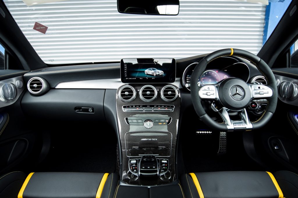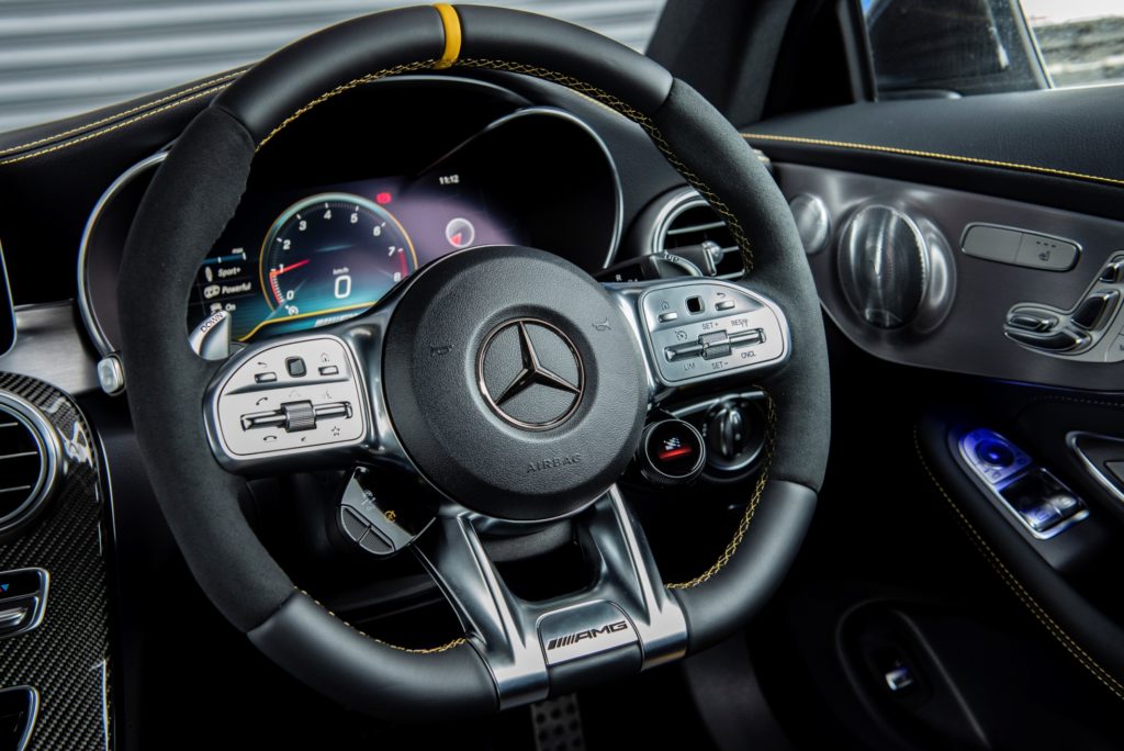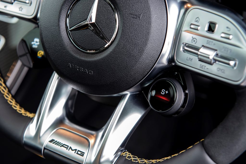 เพิ่มเติมความสะดวกสบายด้วยแผงหน้าปัดแบบดิจิทัลขนาด 12.3 นิ้ว ที่มีโหมดการแสดงผล 3 แบบในสไตล์เอเอ็มจี คือ Classic, Sport และ Super sports เร้าใจมากกว่าที่เคยด้วยพวงมาลัยรุ่นใหม่แบบ AMG Performance Steering Wheel หุ้มด้วยหนังชนิด Nappa leather ตัดสลับกับ DYNAMICA microfibre ที่มีรูปทรงสปอร์ตฐานตัดที่ออกแบบเป็นวงโค้งอย่างสมบูรณ์แบบ มาพร้อมกับปุ่ม AMG steering wheel button สามารถใช้คำสั่งหรือก้านควบคุมต่างๆ ได้ง่ายยิ่งขึ้น