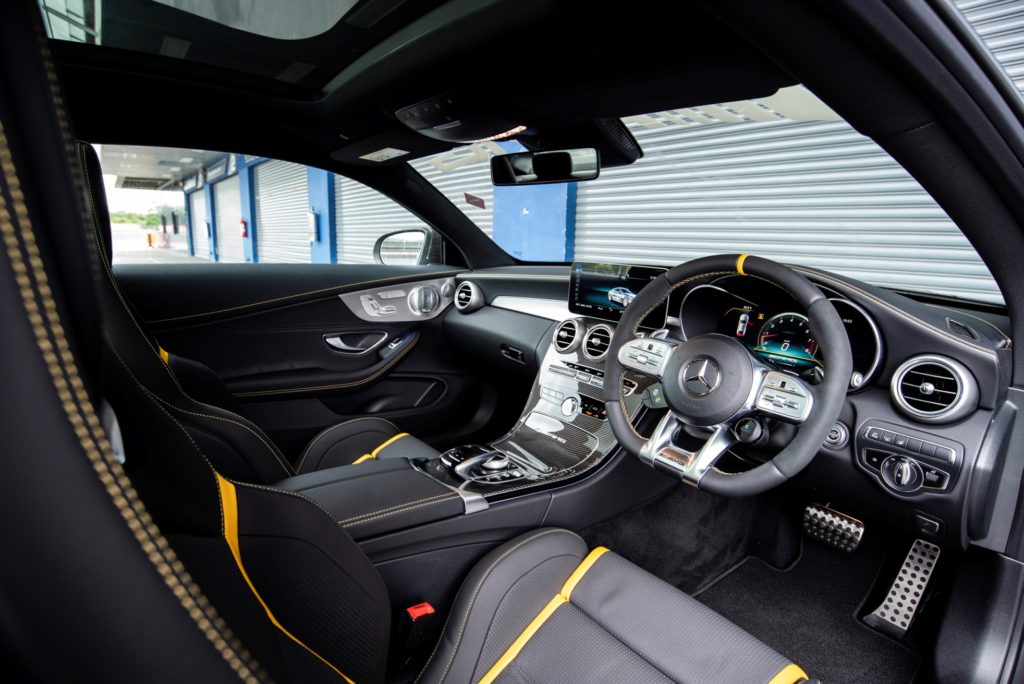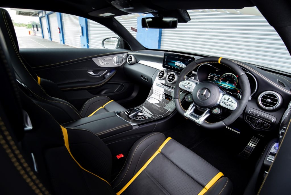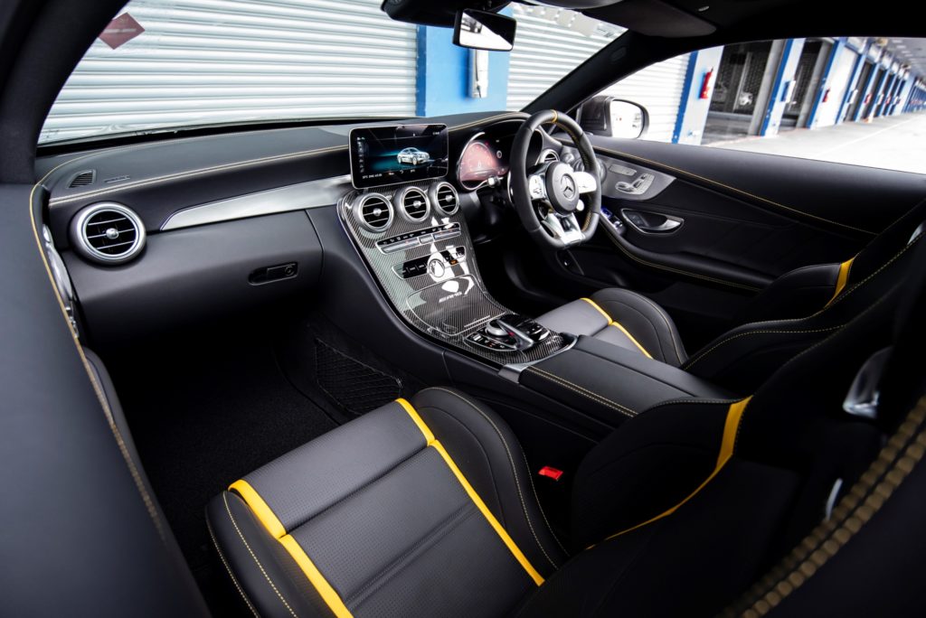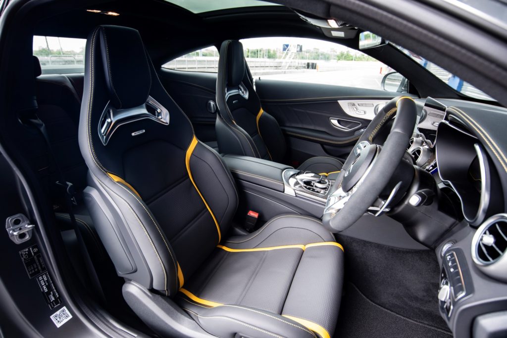 ดีไซน์ภายในของ C 63 S Coupé มาพร้อมเบาะนั่ง AMG Performance seats ด้วยวัสดุหุ้มหนังแท้กับฟังก์ชั่นอุ่นเบาะที่ปรับได้ 3 ระดับ เสริมทั้งพนักพิงหลัง และปีกทั้ง 2 ข้าง เพื่อปกป้องด้านข้างของผู้ขับขี่ขณะขับรถด้วยความเร็วสูงได้ดียิ่งขึ้น