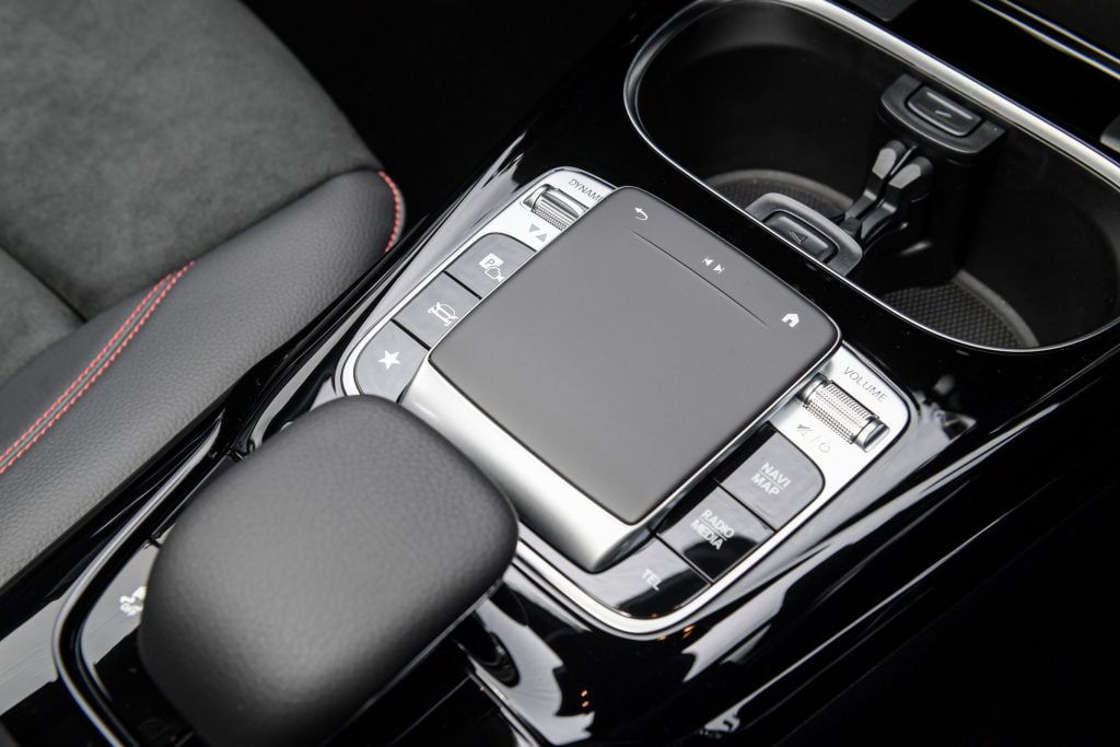 กลางแดชบอร์ดเป็นหน้าจอระบบสัมผัสขนาด 10.25 นิ้วของระบบมัลติมีเดีย MBUX ที่รองรับการสั่งงานด้วยเสียงพูด Hey Mercedes รองรับระบบ Apple CarPlay และ Android Auto รองระบบแผนที่นำทางแบบ 3 มิติ Hard-disk Navigation รวมถึงรองรับ Bluetooth และ Mercedes me connect ผู้ใช้จะควบคุมการทำงานของระบบได้อย่างสะดวกสบายผ่านแป้นระบบสัมผัส AMG centre console ที่คอนโซลกลาง