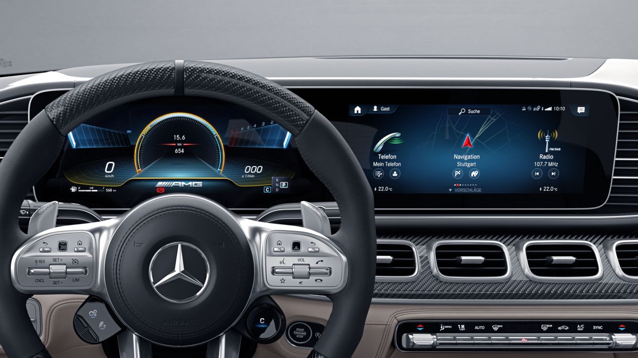 ดีไซน์ภายในห้องโดยสารมีความโอ่โถงและปลดปล่อยอารมณ์สปอร์ตได้ตั้งแต่แรกเห็น เริ่มจากหน้าปัด AMG display with supersport design และพวงมาลัยหุ้มหนัง nappa leather แบบ AMG performance steering wheel พร้อมปุ่ม Touch Control โดย Mercedes-AMG GLE 53 4MATIC+ พร้อมให้คุณข้ามทุกขีดจำกัดแห่งการควบคุมที่เหนือกว่า กับครั้งแรกของระบบมัลติมีเดีย MBUX6 (Mercedes-Benz User Experience) ที่เชื่อมโยงคุณเข้ากับเทคโนโลยีอันชาญฉลาดเสมือนมีผู้ช่วยส่วนตัว โดยพัฒนามาจากนวัตกรรม AI ให้ทุกสิ่งทุกอย่างถูกควบคุมด้วยระบบที่หลากหลายและตอบสนองได้อย่างเปี่ยมประสิทธิภาพ ทั้งระบบสั่งการด้วยเสียงที่สามารถจดจำข้อมูลและเรียนรู้พฤติกรรมการใช้งานต่าง ๆ ของผู้ขับขี่เพื่อแจ้งเตือน หรือปรับเปลี่ยนรูปแบบการใช้งานให้ง่ายและเหมาะสมที่สุด พร้อมพวงมาลัยมัลติฟังก์ชันแบบสปอร์ตหุ้มหนัง Nappa พร้อมปุ่มควบคุมแบบ Touch Control