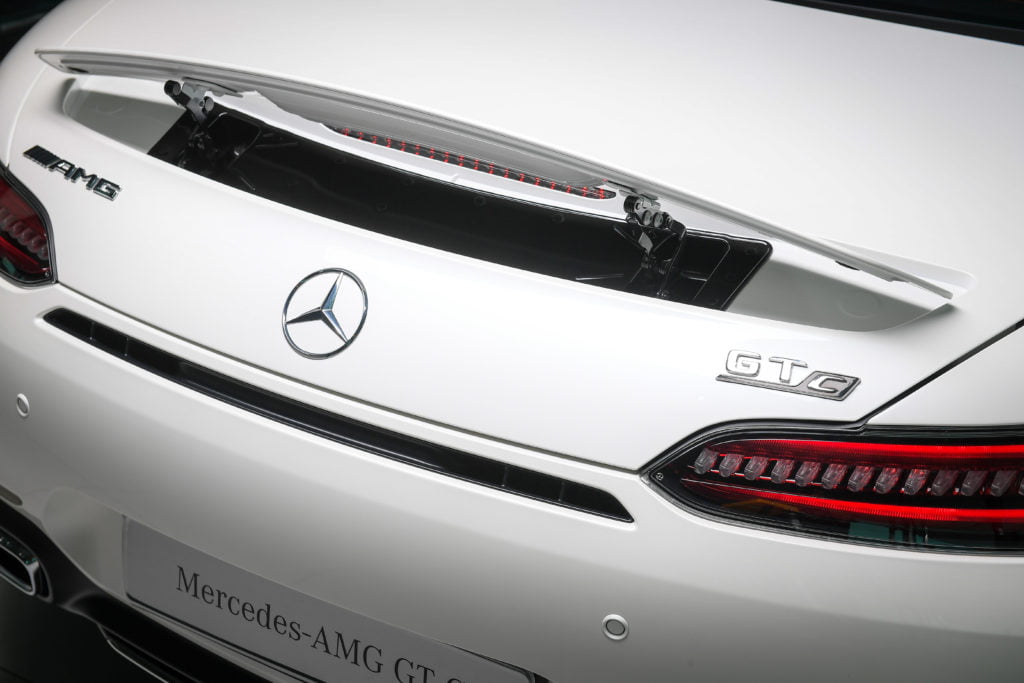 ฝากระโปรงหน้าของ GT C Roadster ผลิตจากคาร์บอนไฟเบอร์และวัสดุ SMC (Sheet Moulding Compound) ที่ถูกพัฒนาขึ้นเป็นพิเศษโดยทีมงานของ Mercedes-Benz TEC (เมอร์เซเดส-เบนซ์ ทีอีซี) และผู้เชี่ยวชาญของ AMG ทำให้มีน้ำหนักเบาแต่ยังคงไว้ซึ่งความทนทานและแข็งแรง ระบบช่วงล่าง AMG RIDE CONTROL Sports Suspension ของทั้ง 4 ล้อมีทั้งปีกนก แกนบังคับเลี้ยว และโครงฐานคุมล้อ (hub carrier) ที่หล่อจากอะลูมิเนียมเพื่อลดน้ำหนักที่ไม่จำเป็น โดยล้อทั้ง 4 จะถูกควบคุมโดยกลไกปีกนกแบบ 2 ชั้น เพื่อเพิ่มความแม่นยำในการหมุนและการเข้าโค้งด้วยความเร็วสูง