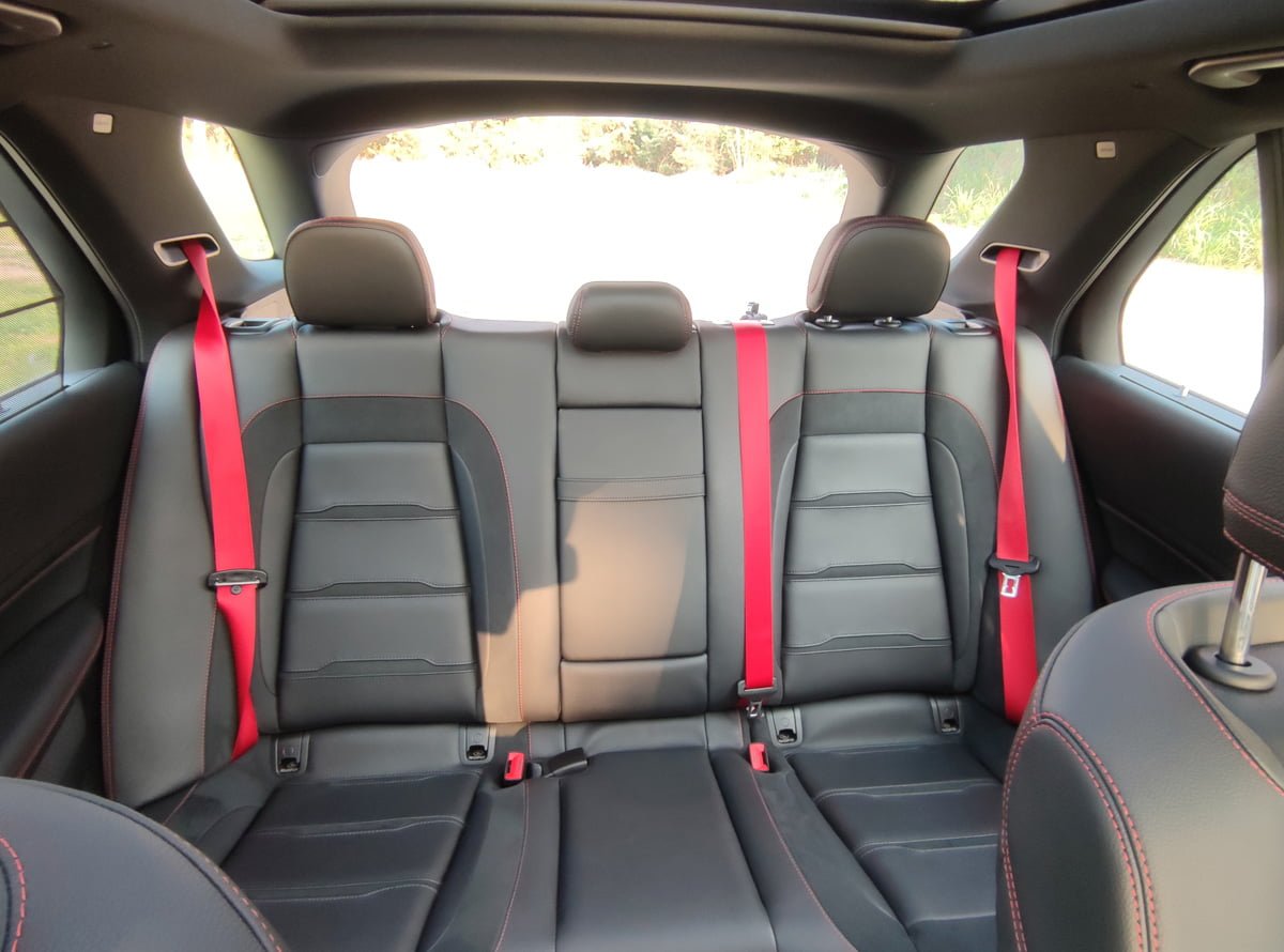 ห้องโดยสารตอนหลังมีเบาะที่เป็นเหมือนกับห้องโดยสารตอนหน้า ในส่วนของที่นั่งมีการออกแบบมาค่อนข้างที่จะรับกับแผ่นหลังเมื่อนั่งแล้วรู้สึกพอดีสำหรับคนสูง 180 ซม. เมื่อนั่งแล้วสบายไม่อึดอัดเพราะห้องโดยสารมีขนาดใหญ่นั่งสบาย อีกทั้งมีแอร์ด้านหลังมาให้ด้วยแต่ว่าไม่สามารถที่จะปรับอุณหภูมิได้แต่ปรับเปิดปิดช่องแอร์ได้ และมีช่องเก็บของบริเวณแอร์และที่เสียบสาย USB-C มาให้