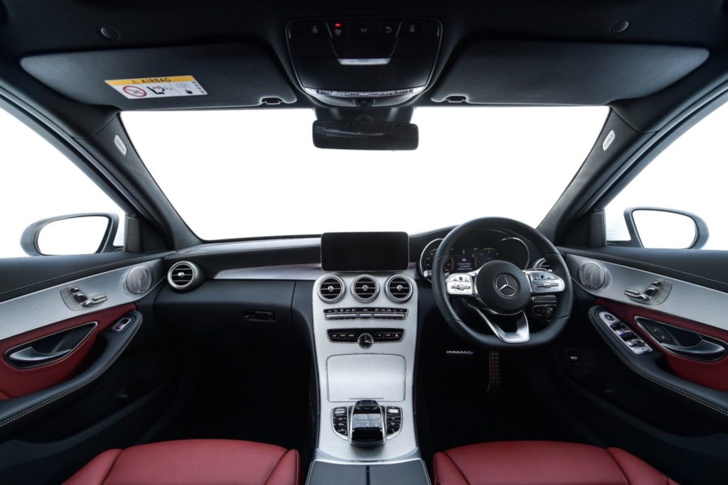 ภายในห้องโดยสารของ C-Class ใหม่ถูกออกแบบให้มีความหรูหราสไตล์สปอร์ต และมีโครงสร้างที่ดูต่อเนื่องเป็นชิ้นเดียว โดยรุ่น Avantgarde จะมาพร้อมกับพวงมาลัยมัลติฟังก์ชันพร้อมปุ่มควบคุมแบบ Touch Control ขณะที่รุ่น Exclusive จะใช้พวงมาลัยระบบพาวเวอร์ปรับระดับด้วยระบบไฟฟ้าและปรับน้ำหนักตามความเร็วรถ ส่วนรุ่น AMG Dynamic มาพร้อมกับพวงมาลัยมัลติฟังก์ชันแบบสปอร์ตฐานตัด พร้อมปุ่มควบคุมแบบ Touch Control