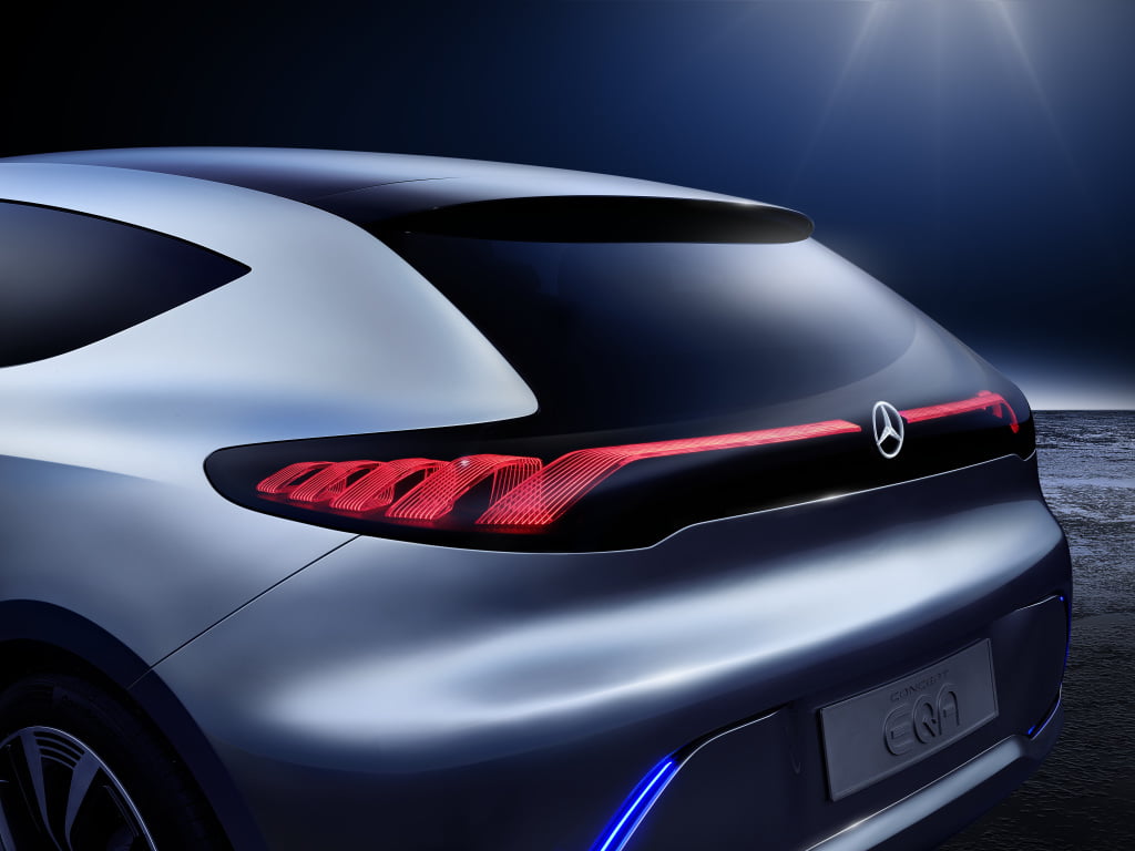 นอกจากนี้ Concept EQA ได้เพิ่มความสวยงามภายนอกด้วยเทคโนโลยีไฟส่องสว่างเลเซอร์ไฟเบอร์ โดยที่ตัวกลางซึ่งถูกกระตุ้นด้วยแสงเลเซอร์ได้ถูกฝังไว้ในแกนกลางของเคเบิ้ลใยแก้ว ไฟรูปทรงขดเกลียวเล็กๆ สวยสะดุดตาช่วยเน้นย้ำแนวคิดของรถยนต์ไฟฟ้า ทั้งด้วยการออกแบบที่ชวนให้นึกถึงขดลวดทองแดงในมอเตอร์ไฟฟ้า และภาพการเคลื่อนไหวที่ให้มโนภาพถึงการเคลื่อนที่ของกระแสไฟฟ้า