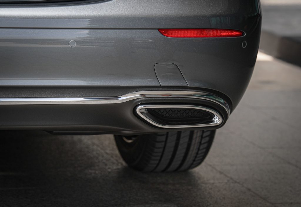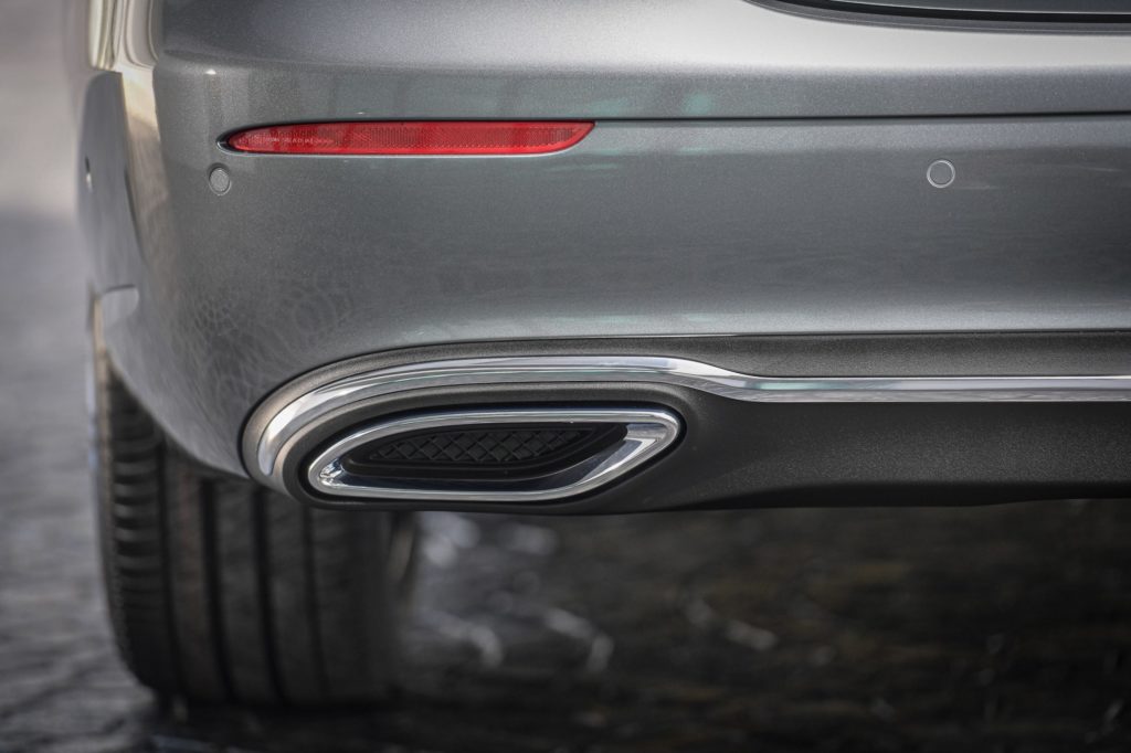 ภายนอกของ E 220 d Sport ได้รับการออกแบบภายใต้คอนเซ็ปท์ Sensual Purity สง่างามด้วยกระจังหน้าสีเงินเสริมโครเมียม พร้อมตราสัญลักษณ์เมอร์เซเดส-เบนซ์ ปลายท่อไอเสียเสริมโครเมียม 2 ท่อ ล้ออัลลอยแบบ 5 ก้าน ขนาด 18 นิ้ว สี tremolite grey ไฟหน้าแบบ LED High Performance ไฟ daytime สำหรับการขับขี่ในเวลากลางวัน แบบ LED fibre-optic กระจกมองข้างด้านผู้ขับขี่และกระจกส่องหลังปรับลดแสงสะท้อนอัตโนมัติ