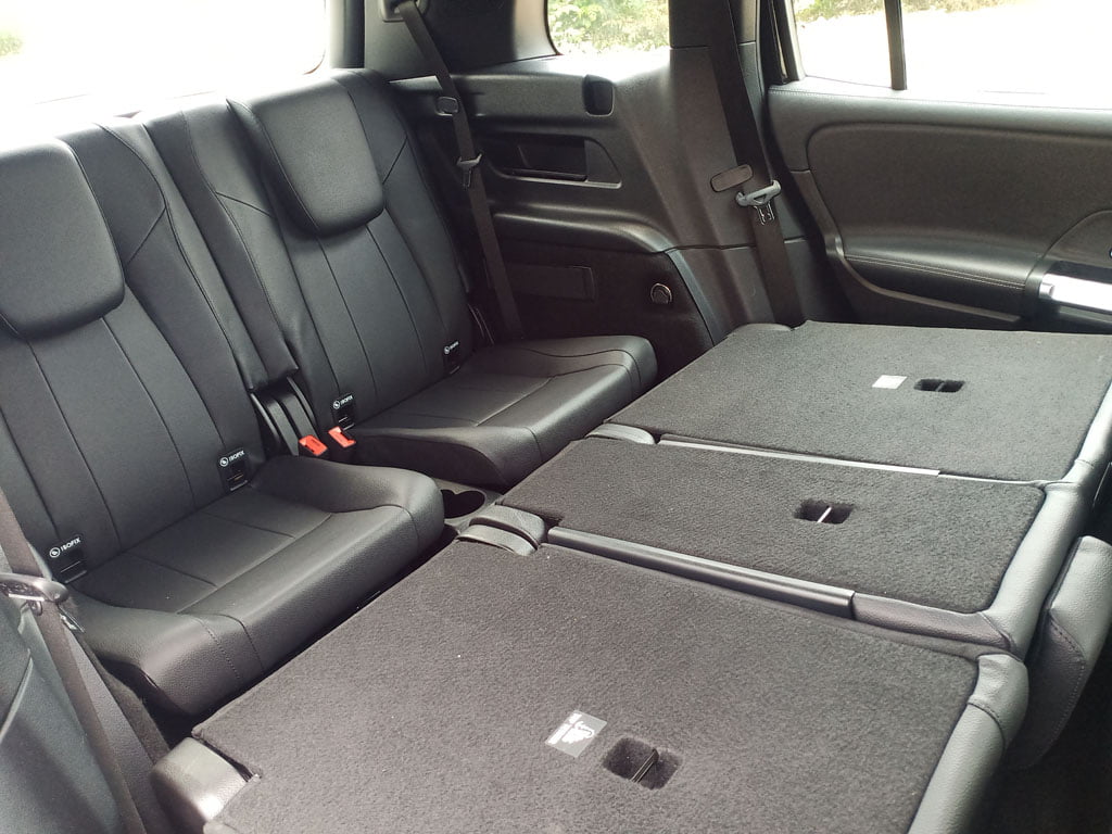 เบาะแถวสามกางขึ้นได้ง่ายจากพื้นห้องเก็บสัมภาระเพราะมีสายดึงแต่มันไม่เหมาะกับคนที่ตัวสูงเกิน 5 ฟุต 6 นิ้ว ทั้งนี้ แม้ว่า Discovery Sport จะไม่มีพื้นที่เบาะแถวสามมากนัก แต่โดยรวมมันก็กว้างขวางกว่า GLB ห้องเก็บสัมภาระของ GLB ใส่กระเป๋าแบ็คแพ็คได้ 2 ใบเมื่อกางเบาะแถวสามขึ้น แต่เมื่อพับลงจะมีพื้นที่มากมายเกินคาด แถมยังมีตะขอเกี่ยวและช่องชาร์จ USB อีก 2 ช่อง