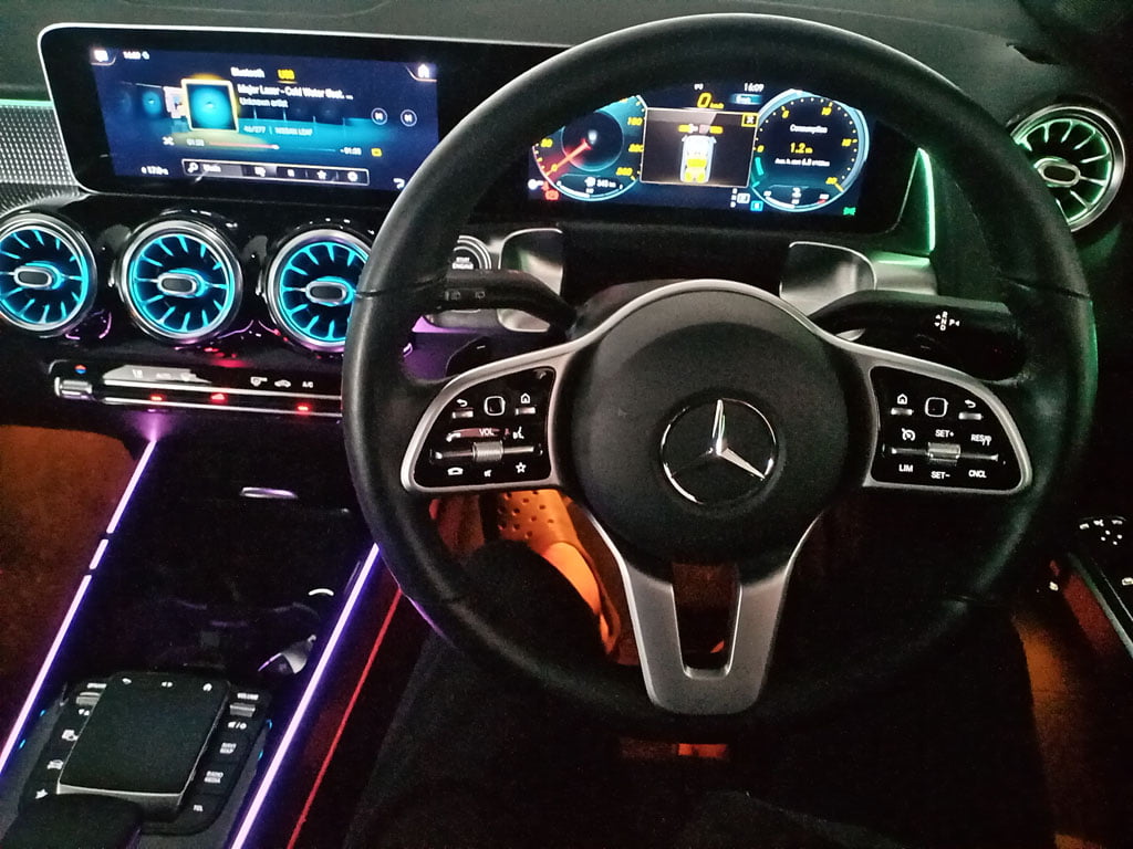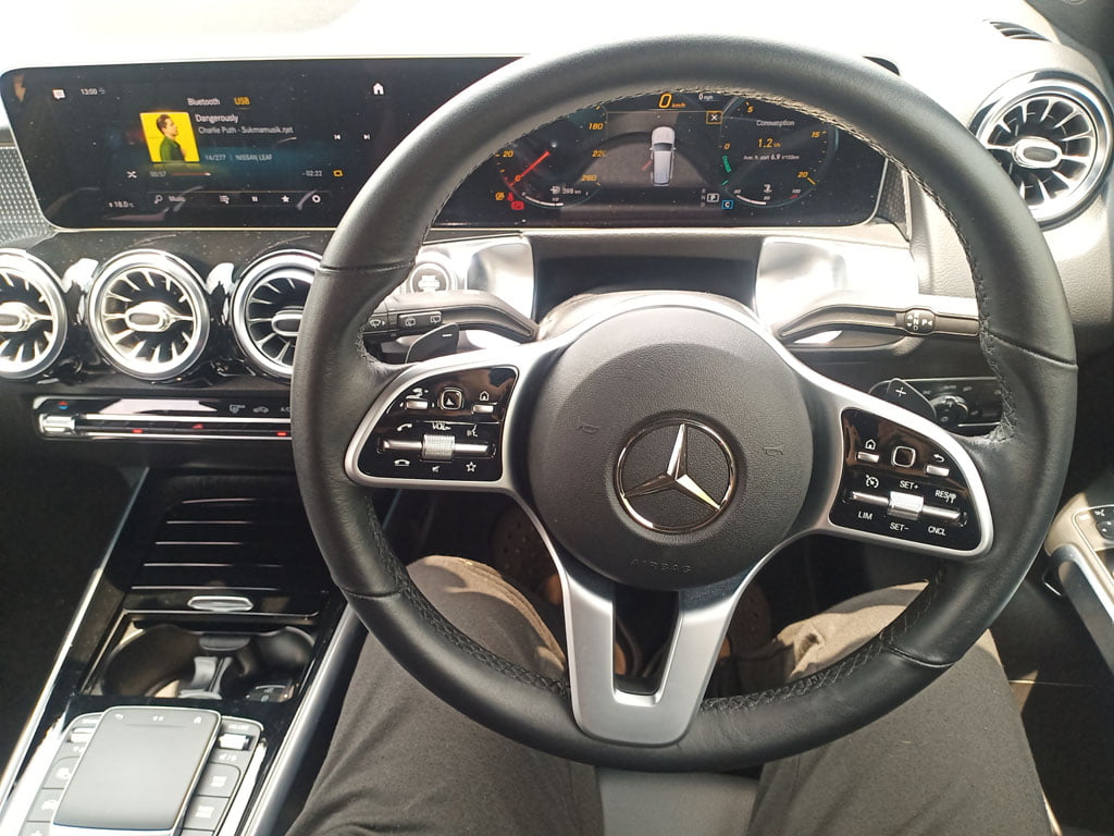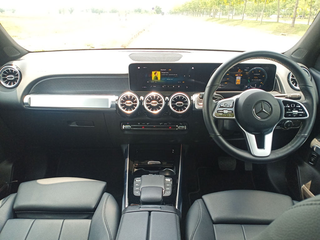 และตอนนี้เรามีโอกาสได้ทดลองขับ Mercedes-Benz GLB บนระยะทางสั้น ๆ แต่ก็ทำให้เราจับสังเกตมองหาความโดดเด่นของเอสยูวี 7 ที่นั่งนี้ได้ไม่น้อย สิ่งแรกที่เราสัมผัสได้หลังจากยัดตัวเองเข้าไปอยู่หลังพวงมาลัยและใช้ความคุ้นชินกับมันสักพักบนถนน นั่นคือ ระบบกันสะเทือนแบบคอมฟอร์ทพร้อมโช๊คอัพแบบแปรผันสามารถปรับความนุ่มหรือแข็งในขณะขับขี่ได้เอง มันน่าพอใจมากในโหมด Comfort แต่ในโหมด Sport ไม่รู้สึกหนึบเหมือน X3 เวอร์ชั่น AMG สักเท่าไหร่