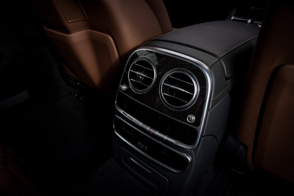 ผู้โดยสารตอนหลังจะได้รับความสะดวกสบายและความบันเทิงอย่างเต็มที่เพราะมีทั้งเครื่องเล่น Blu-ray, หูฟังไร้สาย 2 ชุด, จอแสดงผล 2 ตำแหน่ง รวมถึงระบบเสียงรอบทิศทางสุดพรีเมี่ยมจาก Burmester และม่านบังแดดกระจกหลังปรับไฟฟ้า