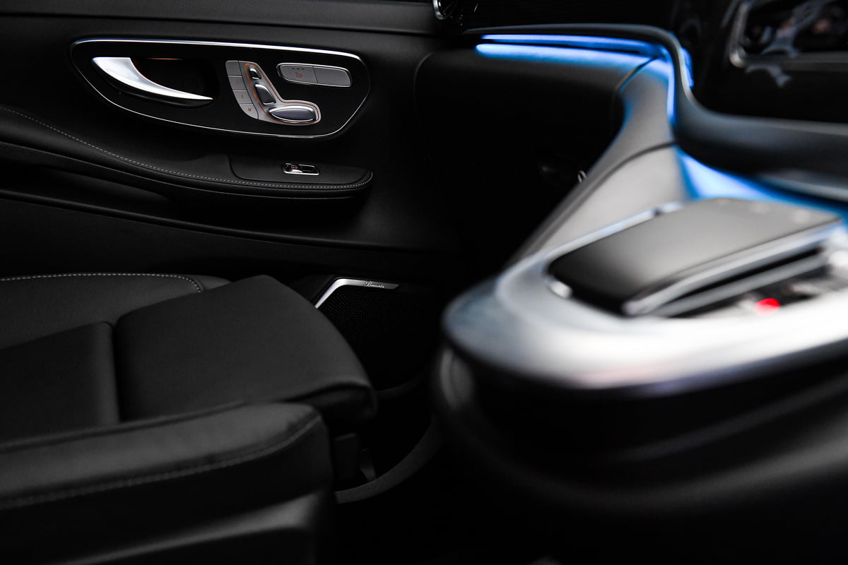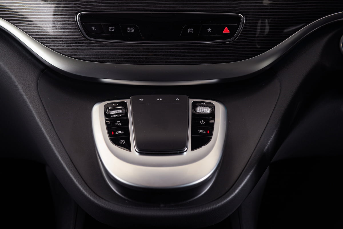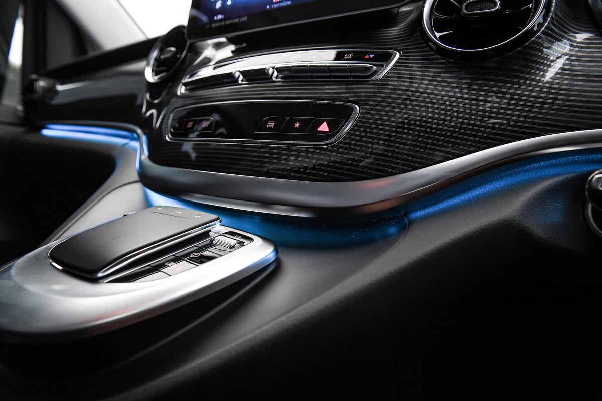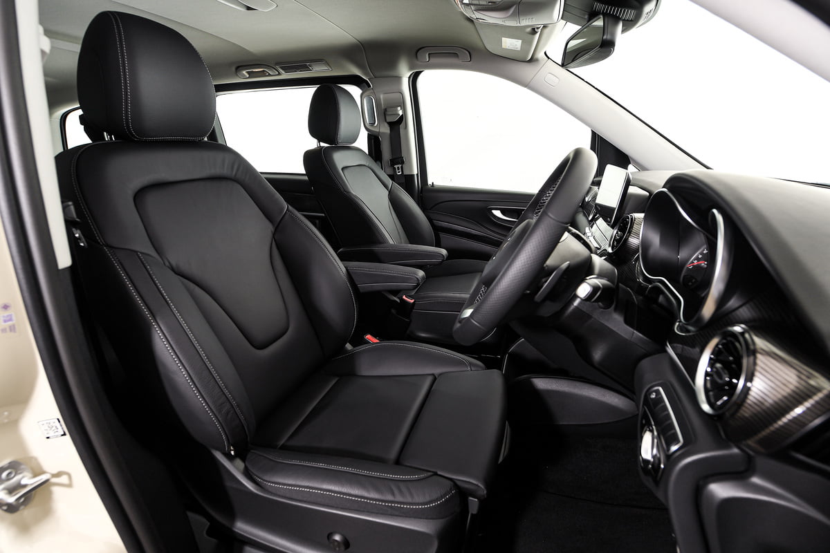 Mercedes-Benz V 250 d Exclusive ถูกออกแบบอย่างประณีตและพิถีพิถันตามแบบฉบับของเมอร์เซเดส-เบนซ์ โดยมีสไตล์ที่เรียบหรู แฝงไปด้วยความสปอร์ตอย่างมีระดับ มีการติดตั้งฟังก์ชั่นการใช้งานที่มอบความสะดวกสบายให้ทั้งผู้ขับขี่และผู้โดยสารได้เป็นอย่างดี ภายในติดตั้งพวงมาลัยมัลติฟังก์ชั่นที่สามารถควบคุมการใช้งานต่างๆ ภายในรถได้อย่างอัจฉริยะ พร้อมเสริมความสนุกในการขับขี่ด้วยแป้นควบคุมการเปลี่ยนเกียร์ (DIRECT SELECT gearshift paddles) สำหรับการตกแต่งภายในมีการหุ้มเบาะด้วยหนัง Lugano สีดำ ตกแต่งคอนโซลด้วยลวดลาย pinstripe effect ที่มีความลงตัวรับกับหน้าจอหลักบนคอนโซลกลางที่เป็นจอมัลติมีเดียขนาด 10.25 นิ้ว ใช้ระบบเชื่อมต่อแบบ Smart Phone Integration รองรับ Apple CarPlay และ Android Auto รวมถึงระบบ MBUX (Mercedes-Benz User Experience) ที่ผสานการทำงานของระบบมัลติมีเดียเข้ากับเทคโนโลยีอัจฉริยะ AI เพื่อเรียนรู้และจดจำพฤติกรรมของผู้ขับขี่ และควบคุมระบบความบันเทิงผ่านคำสั่งเสียง พร้อมยกระดับบรรยากาศที่ดีเยี่ยมในห้องโดยสารด้วยคุณภาพของระบบเสียงรอบทิศทางแบบ Burmester และแสงไฟ Ambient Light แบบปรับเฉดสีได้ 3 สี