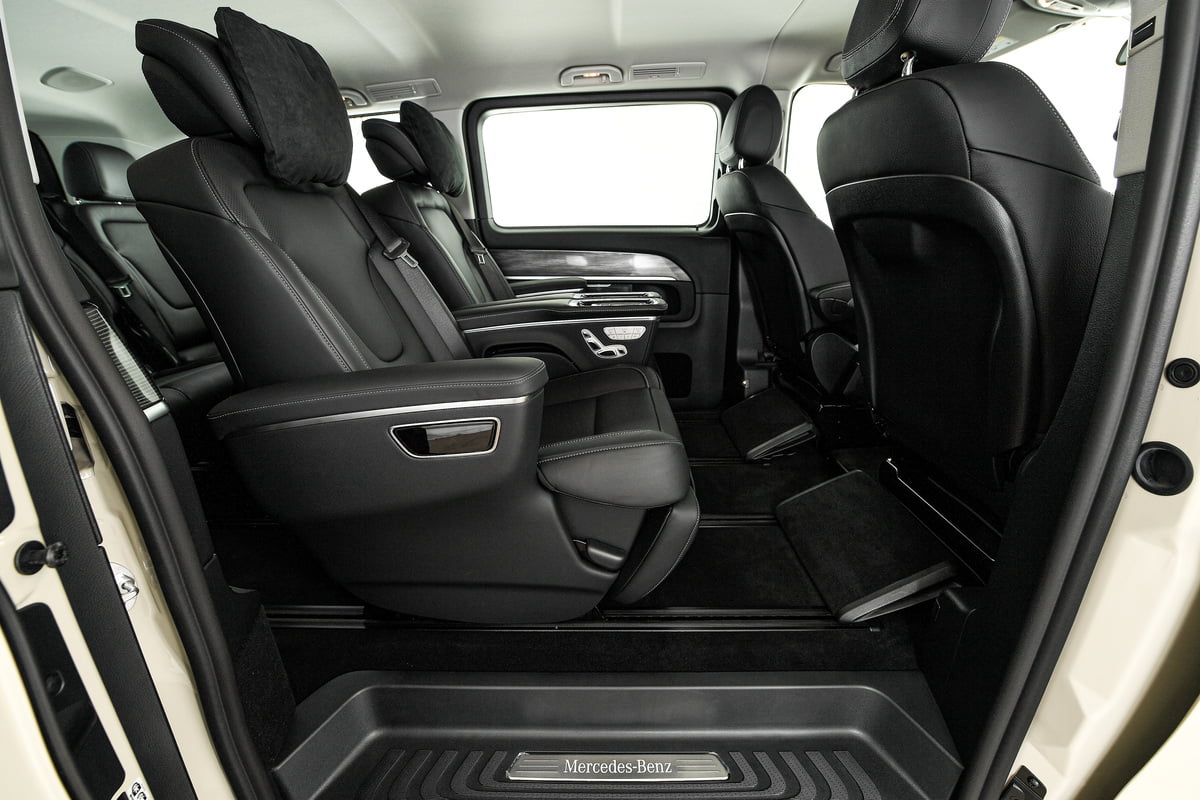 Mercedes-Benz V 250 d Exclusive เป็นรถแวนแบบ 3 ตอน 7 ที่นั่ง จัดรูปแบบการนั่งแบบ 2-2-3โดยออกแบบตัวถังแบบ Extra Long ด้วยมิติตัวถังทั้งความกว้าง ความยาว ความสูง อยู่ที่ 1,928 x 5,370 x 1,909 มม. ทำให้มีพื้นที่ใช้สอยในส่วนของพื้นที่โดยสารและพื้นที่บรรทุกสัมภาระที่มากขึ้นโดยมีความจุสัมภาระสูงสุด 1,410 ลิตร และความจุถังน้ำมัน 70 ลิตร