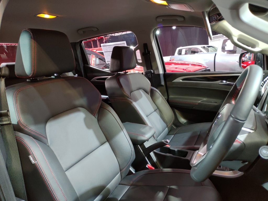 ห้องโดยสารของ MG Extender มาในโทนสีดำตัดด้วยชิ้นส่วนสีเงินอะลูมิเนียม แดชบอร์ดดีไซน์ทันสมัย เสริมความพรีเมี่ยมด้วยวัสุซอฟท์ทัช และตะเข็บเบาะสีแแดง เบาะนั่งเป็นหนังสังเคราะห์ เบาะคู่หน้าปรับไฟฟ้า 6 ทิศทาง (เฉพาะรุ่นท็อป) พวงมาลัยปรับขึ้น-ลง 2 ทิศทาง หน้าปัดแบบเข็มอนาล็อกดีไซน์สปอร์ต มีจอ MID อยู่ตรงกลาง นอกจากนี้ ยังมาพร้อมสิ่งอำนวยความสะดวกครบครัน อาทิ พวงมาลัยมัลติฟังก์ชั่นพร้อมปุ่มควบคุมเครื่องเสียงและครูสคอนโทรล กุญแจระบบ Smart Key พร้อมปุ่ม Push Start และระบบปรับอากาศอัตโนมัติ เบาะหลังพับได้ และช่องปรับอากาศสำหรับผู้โดยสารด้านหลัง