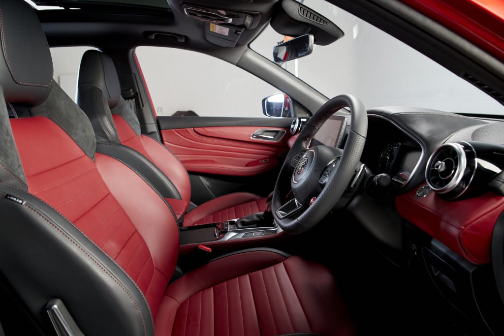 ภายในห้องโดยสารได้รับการออกแบบให้มีความโค้งมนโอบรับสรีระ พร้อมการเล่นระดับมีสไตล์และตกแต่งด้วยวัสดุ Soft Touch ครอบคลุมทั้งบริเวณคอนโซลหน้า และแผงประตูทั้งด้านหน้าและด้านหลัง เพิ่มความพรีเมี่ยมยิ่งขึ้นด้วยเบาะนั่งคู่หน้าปรับด้วยไฟฟ้าแบบ Bucket Seat ทรงสปอร์ตสีดำสลับแดงที่มีส่วนหุ้มด้วยวัสดุ Alcantara (เฉพาะรุ่น X)