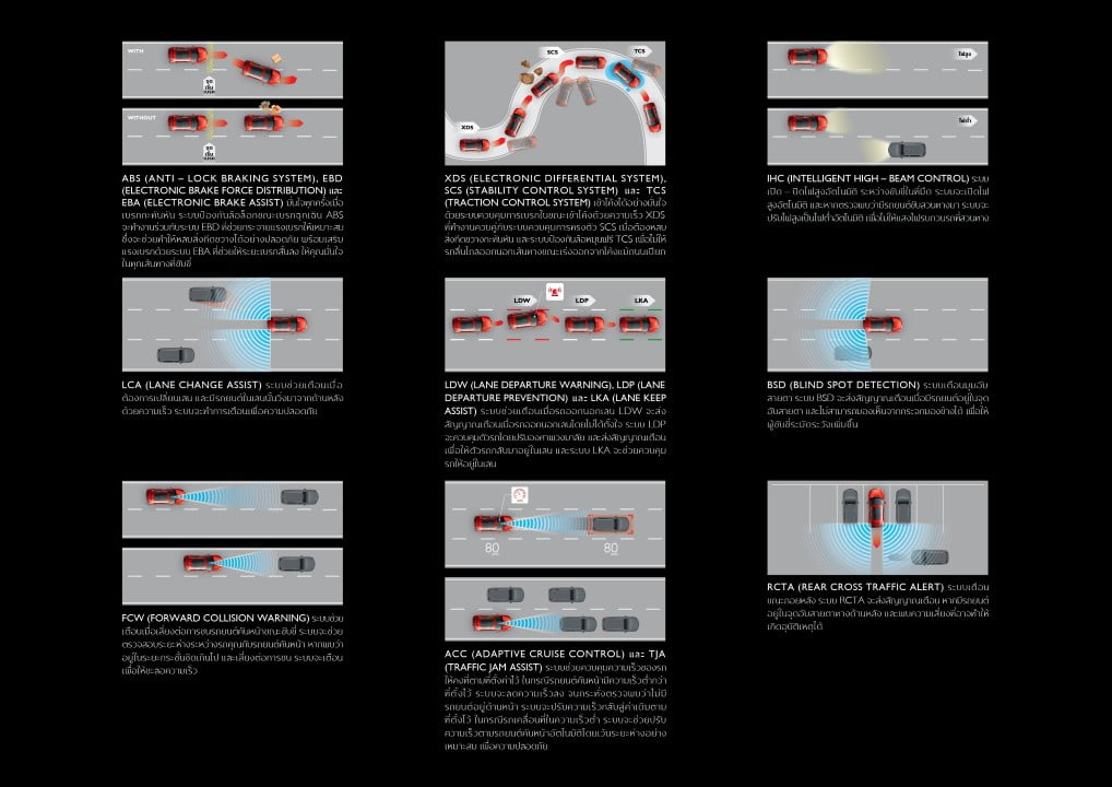 รวมไปถึงระบบความปลอดภัยอัจฉริยะที่มีหน้าที่ช่วยผู้ขับขี่ Advanced Driver Assistance Systems (ADAS) มากถึง 7 ระบบประกอบด้วย