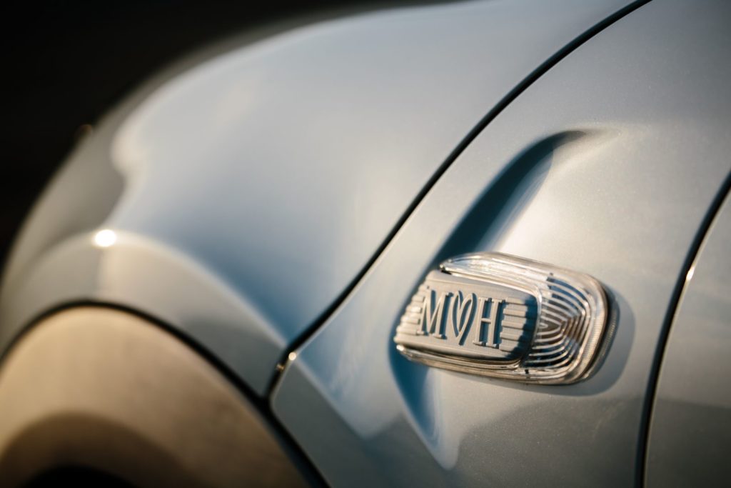ไฮไลท์ที่สำคัญของ Mini Hatch รุ่นพิเศษนี้ คือการรังสรรค์ลวดลายกราฟฟิคอันเป็นเอกลักษณ์บนหลังคารถ ซึ่งได้รับการวาดขึ้นด้วยมือและเป็นการผสานองค์ประกอบต่างๆ ของธงชาติสหราชอาณาจักรและธงชาติสหรัฐอเมริกา ประเทศบ้านเกิดของเจ้าชายแฮรี่และมิสเมแกน มาร์เคิล ไว้ด้วยกันอย่างลงตัว และอีกหนึ่งความพิเศษ คือกรอบไฟเลี้ยวด้านข้าง ที่พิมพ์ด้วยเครื่องพิมพ์สามมิติ จารึกอักษรย่อตัว M และ H พร้อมลายหัวใจ เมื่อเปิดประตูรถ ไฟใต้กรอบประตูสาดส่องต้อนรับเป็นคำว่า “Just Married” บริเวณพื้นด้านคนขับและผู้โดยสารด้านหน้า เป็นสักขีพยานรักในพิธีเสกสมรสครั้งประวัติศาสตร์นี้