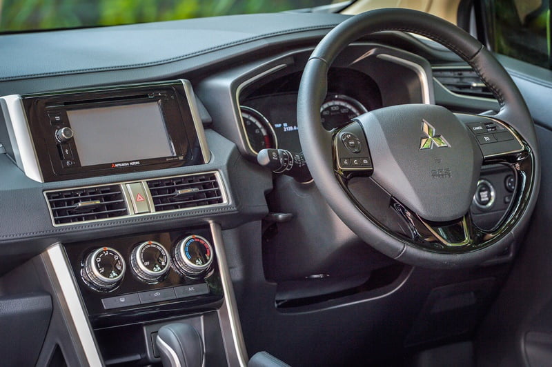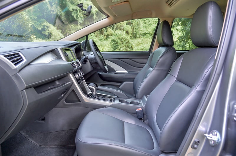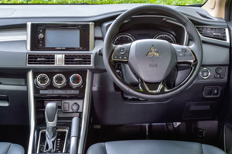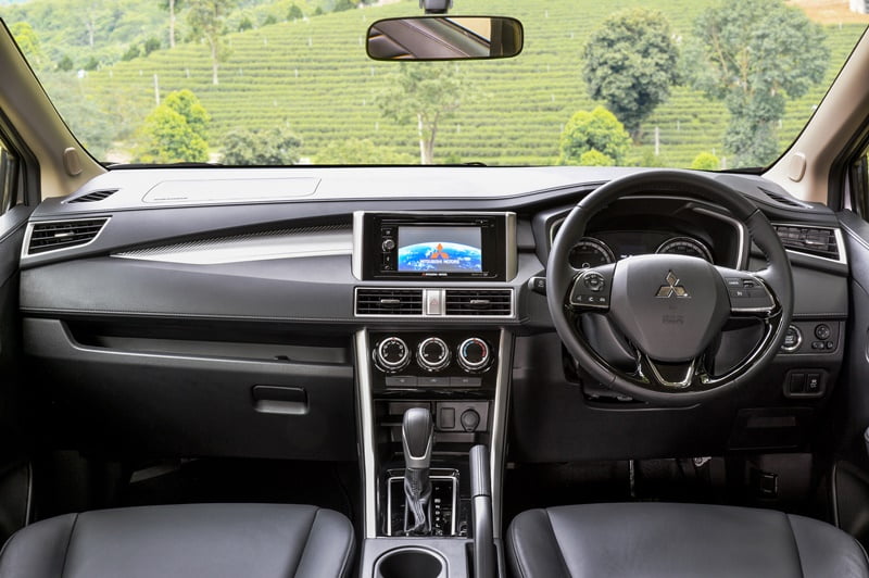 ภายในห้องโดยสารของ Xpander มาในโทนสีดำ ตกแต่งด้วยลายคาร์บอนเมทัลลิกพร้อมวัสดุสีเงินและสีดำเงา Piano Black รองรับผู้โดยสารสูงสุด 7 ที่นั่งด้วยเบาะ 3 แถว เบาะคนขับปรับด้วยมือได้ 6 ทิศทาง เบาะผู้โดยสารตอนหน้าปรับด้วยมือ 4 ทิศทาง เบาะนั่งแถวที่ 2 แยกพับอิสระ 60 : 40 ปรับเอนและปรับเลื่อนหน้า–หลังได้ สามารถพับทบได้เพื่อเพิ่มพื้นที่เข้าออกแถวที่ 3 พนักพิงหลังตรงกลางสามารถพับลงมาเป็นที่วางแขนได้