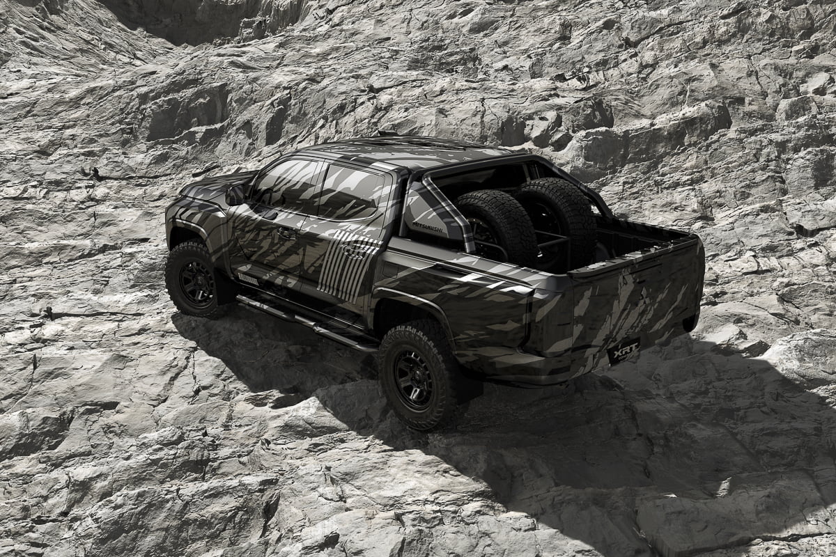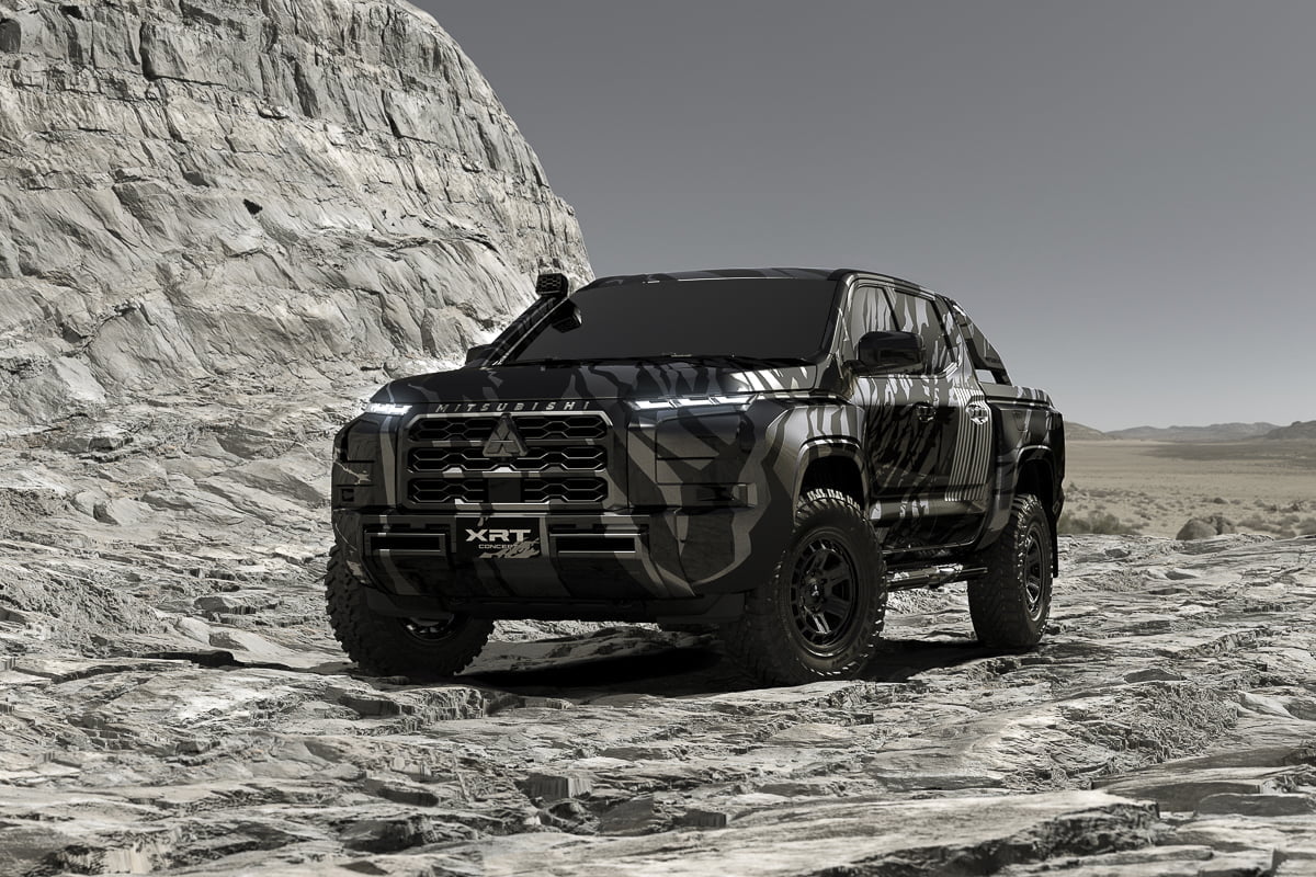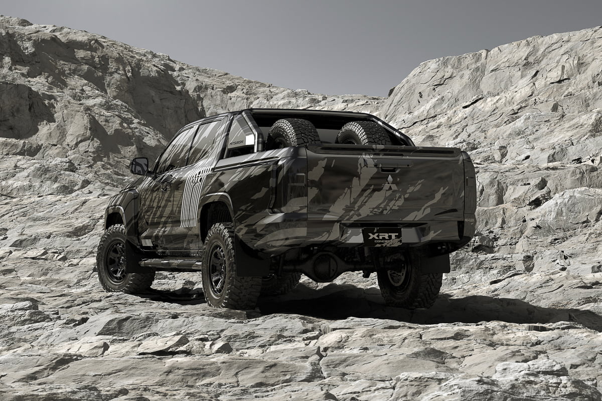 “มิตซูบิชิ เอ็กซ์อาร์ที คอนเซ็ปต์” เป็นรถต้นแบบของรถกระบะไทรทัน โมเดลใหม่ ที่มาพร้อมดีไซน์ดุดันสะดุดตาตั้งแต่ด้านหน้าจรดท้าย เสริมอารมณ์แกร่งด้วยเส้นนำสายตาจากกระโปรงหน้าสู่ด้านข้างตัวถังในสไตล์แนวราบ พร้อมการตกแต่งเหนือซุ้มล้อหน้า-หลัง และติดตั้งยางลุยโคลน (mud-terrain) ที่ช่วยเพิ่มพลังขับเคลื่อนเต็มสปีด ปราดเปรียวพร้อมพุ่งทะยานในทุกเส้นทางสุดหฤโหดของการแข่งขันแรลลี่