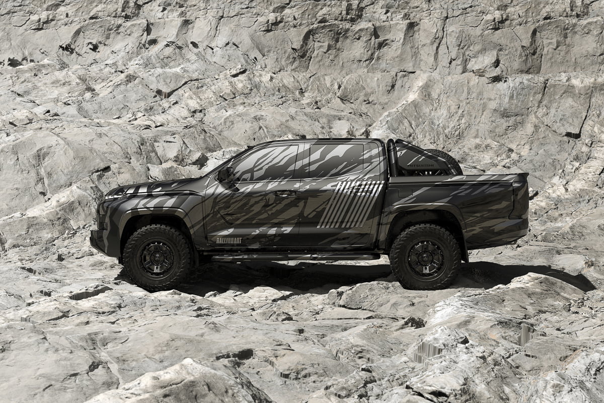 ตัวถังห่อหุ้มด้วยลายพราง ซึ่งได้รับแรงบันดาลใจมาจาก “ลาวา” หินภูเขาไฟที่อัดแน่นด้วยพลังงาน อันทรงพลัง พร้อมด้วยกราฟฟิกเส้นขนานแนวเฉียง 10 เส้น ในแบบฉบับของโลโก้ แรลลี่อาร์ท ที่สะท้อนถึงจิตวิญญาณที่ขับเคลื่อนไปข้างหน้าของมิตซูบิชิ มอเตอร์ส ได้อย่างโดดเด่น