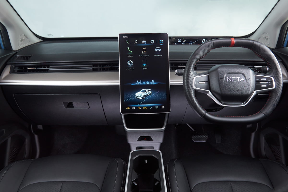 NETA V รถยนต์พลังงานไฟฟ้า 100% สไตล์ City Car มาพร้อมแนวคิด “Touchable Smart EV” รถยนต์พลังงานไฟฟ้าอัจฉริยะที่ทุกคนสามารถเป็นเจ้าของได้ ได้รับการออกแบบภายนอกที่ลงตัวตามหลักอากาศพลศาสตร์ และการออกแบบภายในที่เรียบง่ายแต่แฝงไว้ด้วยเทคโนโลยีที่ล้ำสมัย โดดเด่นด้วยหน้าจอ Infotainment ระบบสัมผัส ขนาดใหญ่ 14.6 นิ้ว พร้อมระบบการเชื่อมต่อโทรศัพท์มือถือ กุญแจแบบสมาร์ทคีย์พร้อมระบบ Ride & Go ให้รถพร้อมสำหรับการขับขี่ทันทีที่เปิดประตูรถ