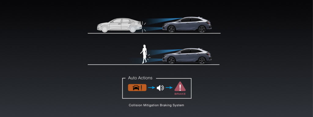 - ระบบเตือนการชนรถและคนเดินถนนพร้อมระบบช่วยเบรก (Collision Mitigation Braking System: CMBS)