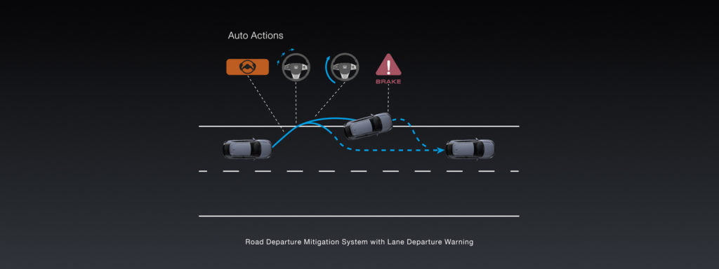 - ระบบเตือนและช่วยควบคุมเมื่อรถออกนอกช่องทางเดินรถ (Road Departure Mitigation System with Lane Departure Warning : RDM with LDW)