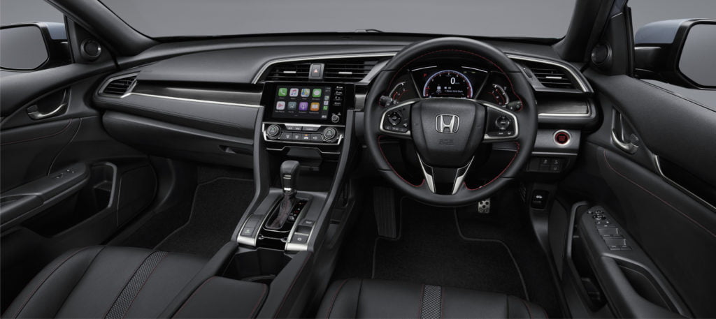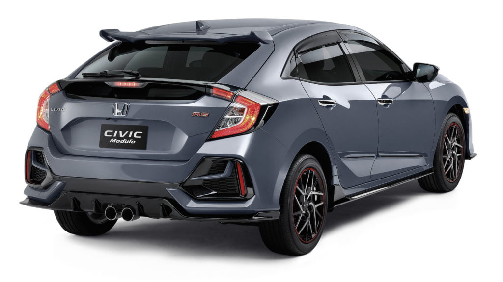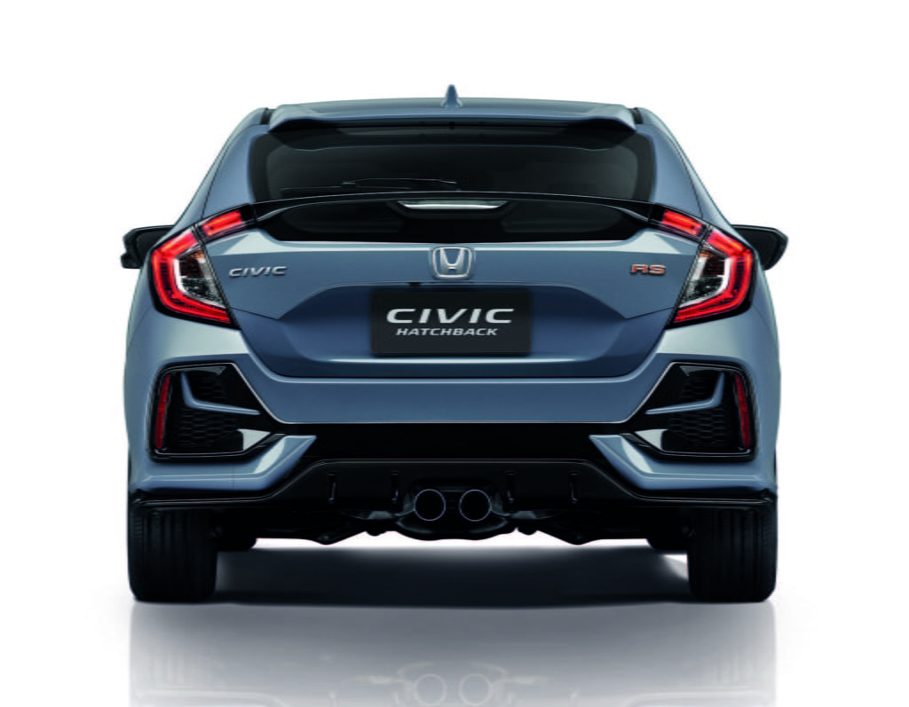 Civic Hatchback ใหม่ มาพร้อมความสปอร์ตและดุดันยิ่งขึ้นด้วยกันชนหน้า-หลังดีไซน์ใหม่ มาพร้อมไฟหน้าพร้อมไฟส่องสว่างสำหรับการขับขี่ในเวลากลางวันแบบ LED ชุดแต่งสไตล์สปอร์ตรอบคันแบบ RS ท่อไอเสียเปลี่ยนมาเป็นแบบคู่ตรงกลางกันชนหลังให้อารมณ์คล้ายตัว Civic Type R ใส่ล้ออัลลอยดีไซน์ใหม่ขนาด 17 นิ้ว อีกทั้งไฟท้ายรูปทรงตัว C แบบ LED เอกลักษณ์เฉพาะ