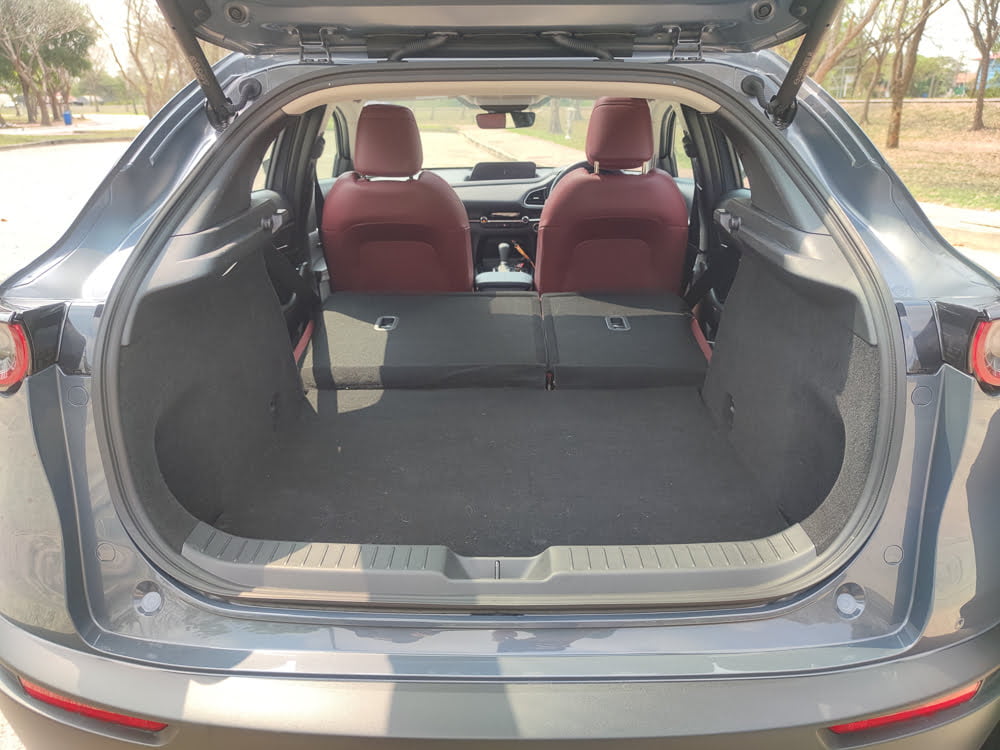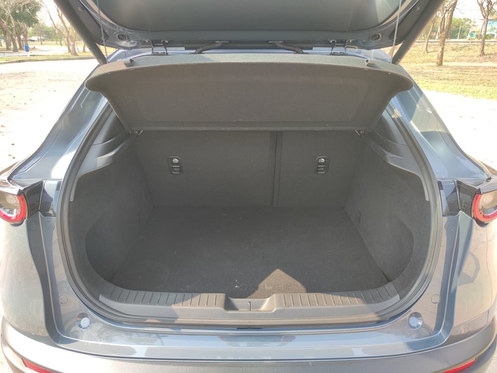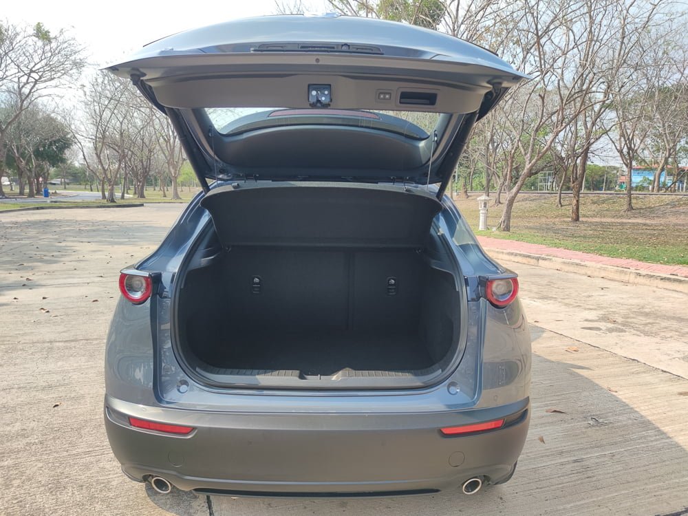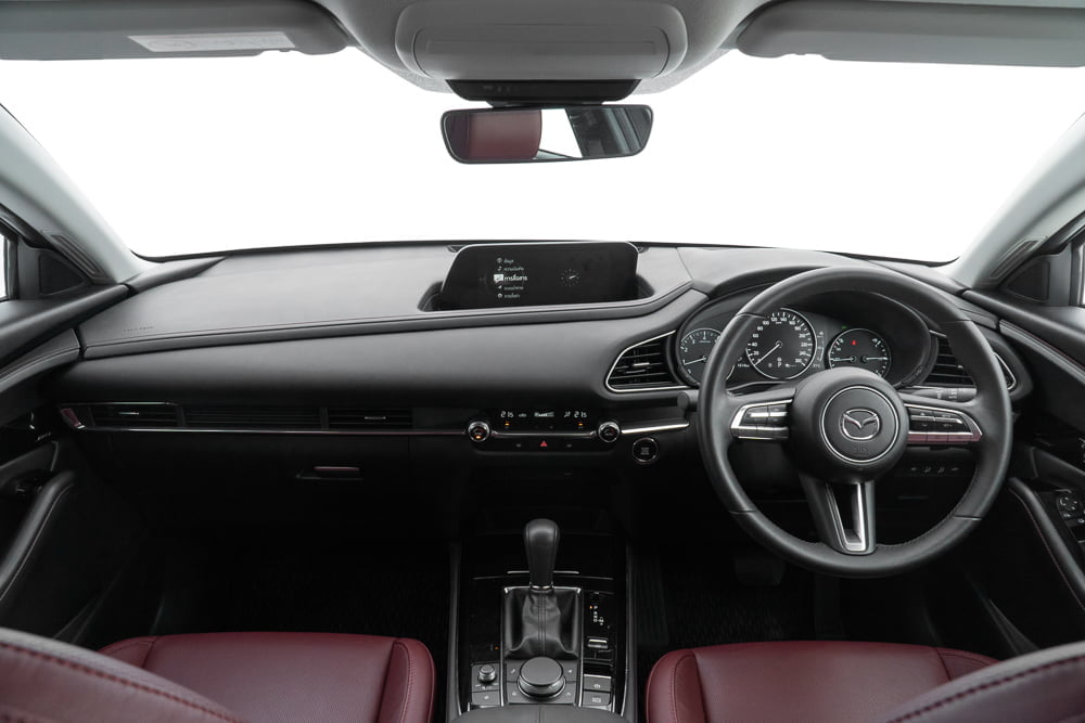 Mazda CX-30 เป็นรถที่ออฟชั่นแน่น ความบันเทิงครบ เครื่องเสียงดี พร้อมทั้งระบบความปลอดภัยที่ครบครัน นอกจากภายในหรูหราด้วยวัสดุที่มีคุณภาพดีสุดในกลุ่ม เบาะนั่งสบายด้วยการออกแบบ G-Vectoring Control Plus ส่งผลให้การนั่งในระยะไกลรู้สึกสบาย เก็บเสียงดีและเบาะหลังกว้างกว่าง CX-3 แต่ไม่กว้างที่สุดในรถกลุ่มนี้
