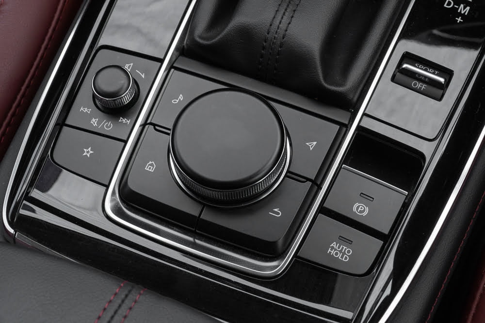 ห้องโดยสาร จัดวางฟังก์ชันการใช้งานในตำแหน่งศูนย์กลาง ทำให้การวางตำแหน่งของอุปกรณ์ควบคุมต่าง ๆ ใช้งานได้ง่าย การใช้งานปุ่มหรือสวิตช์ต่างๆ เอื้อประโยชน์สำหรับคนขับมากเป็นพิเศษ ในส่วนของแดชบอร์ดออกแบบเน้นไปแนวสปอร์ตสีทูโทนเป็นสีน้ำตาลตัดสีดำหุ้มหนัง และหน้าจอสี Center Display แบบ Widescreen ขนาด 8.8 นิ้ว ควบคุมด้วยปุ่มควบคุมอัจฉริยะ Center Commander โดยผู้ขับขี่ไม่ต้องละสายตาจากถนน สามารถเชื่อมต่อการสื่อสารมีระบบ Mazda Connect ที่มาพร้อม Apple CarPlay วิทยุ AM/FM ระบบเชื่อมต่อ USB สองช่อง และจอภาพมอนิเตอร์ยังเชื่อมโยงกับกล้องมองรอบทิศทางที่ให้ภาพค่อนข้างชัดเจน พร้อมระบบเสียงจาก Bose ลำโพง 12 ตำแหน่ง